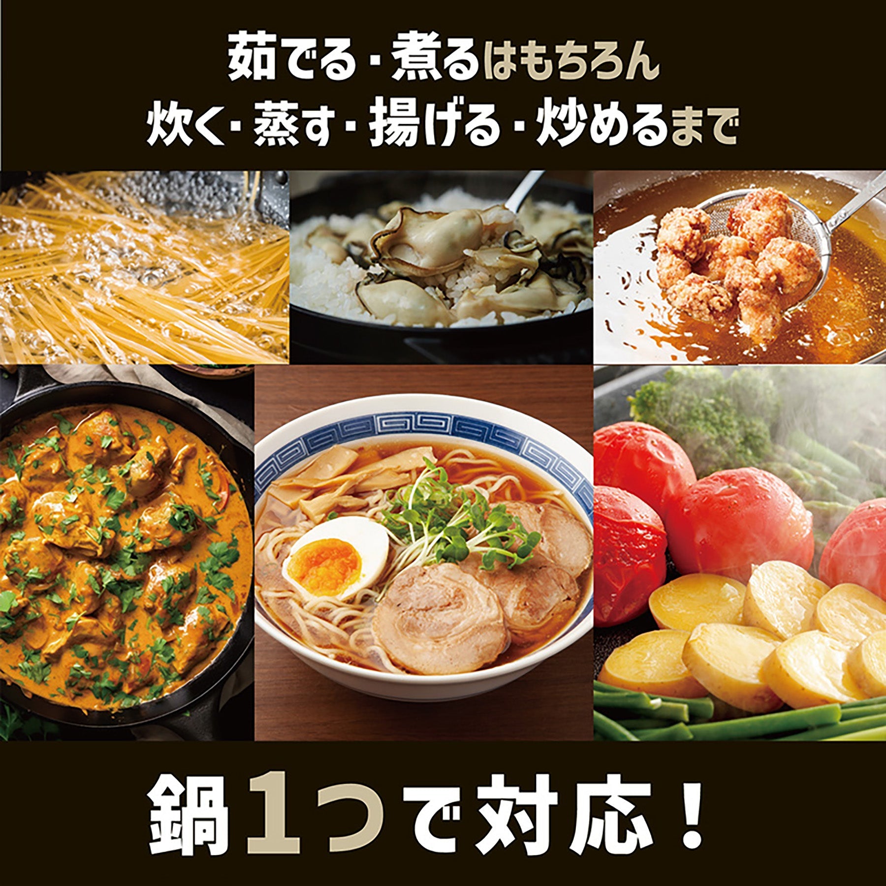 焼く、炒める、煮る、茹でる、揚げる、蒸すなどマルチな料理シーンに。 |