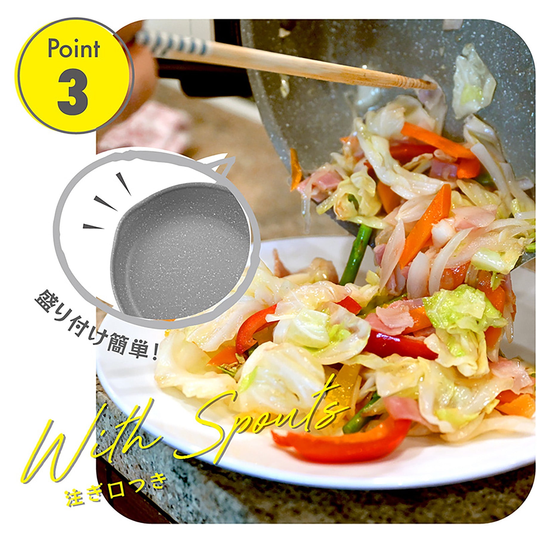 ●マーブルダイヤモンドコーティング加工でこびりつきにくく、優れた耐久性を持つコーティングで長く使えます。