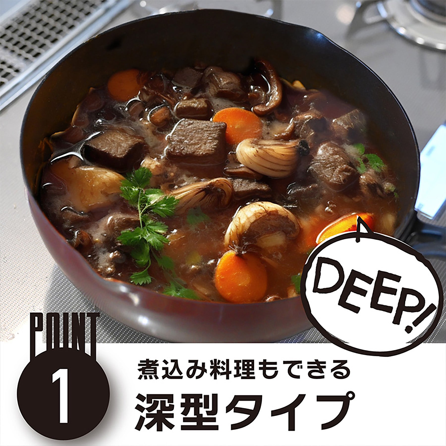●焦げ付きやすい料理もこびりつきにくく、煮込み料理もできる深型タイプです。