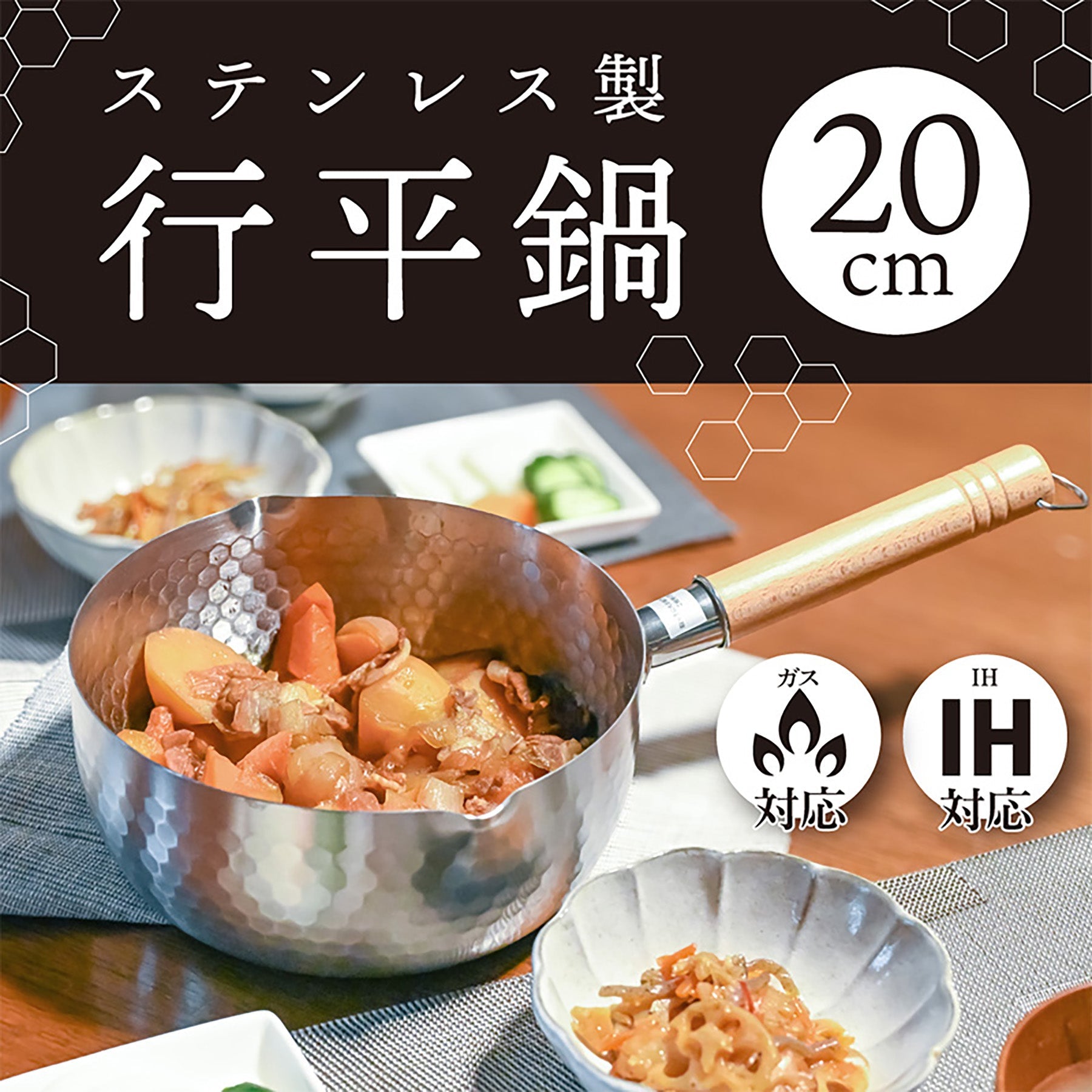 ●IH/ガス火オール熱源対応で200Vのハイパワー熱源にも対応しているので、様々なシーンで使いやすいです。