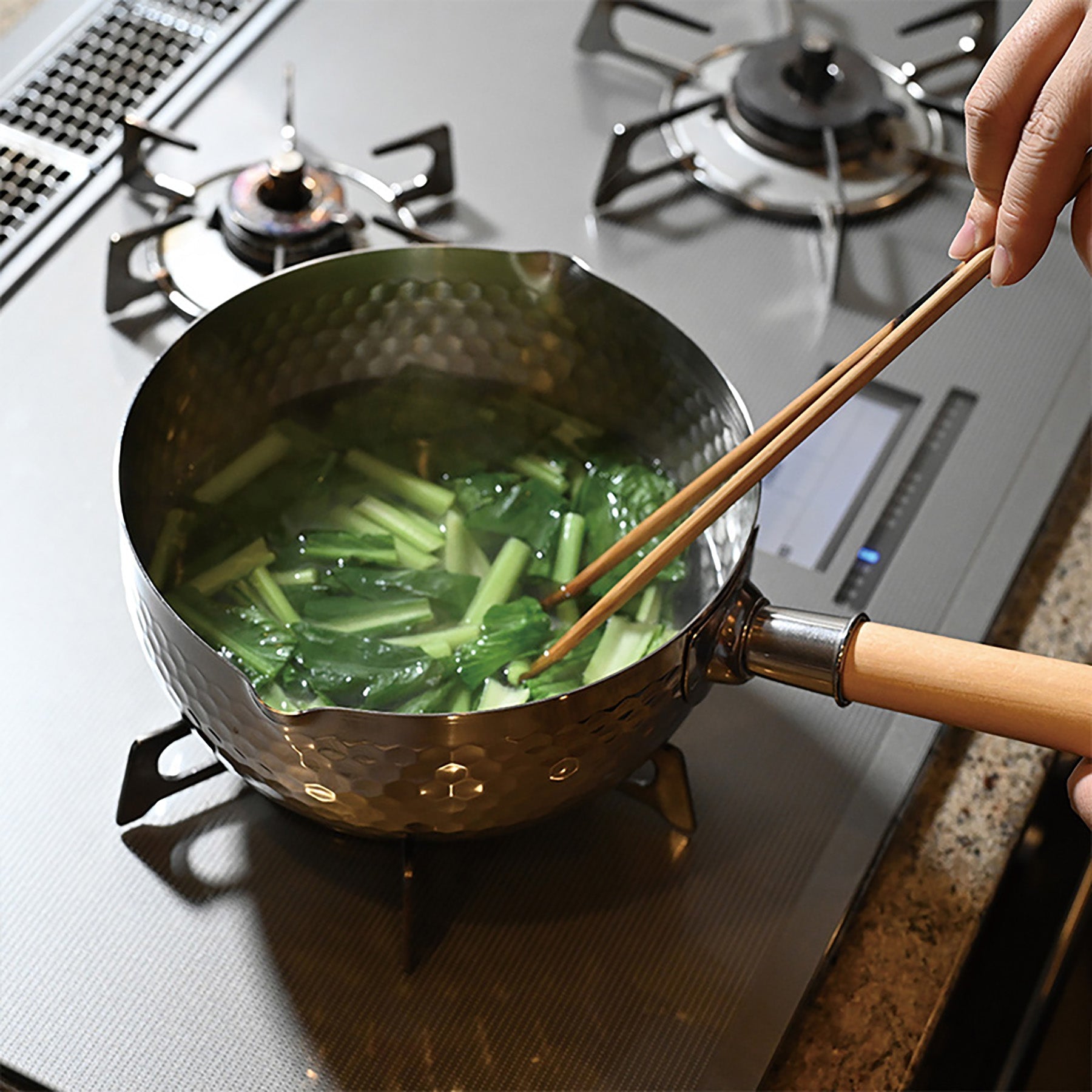 ●IH/ガス火オール熱源対応で200Vのハイパワー熱源にも対応しているので、様々なシーンで使いやすいです。
