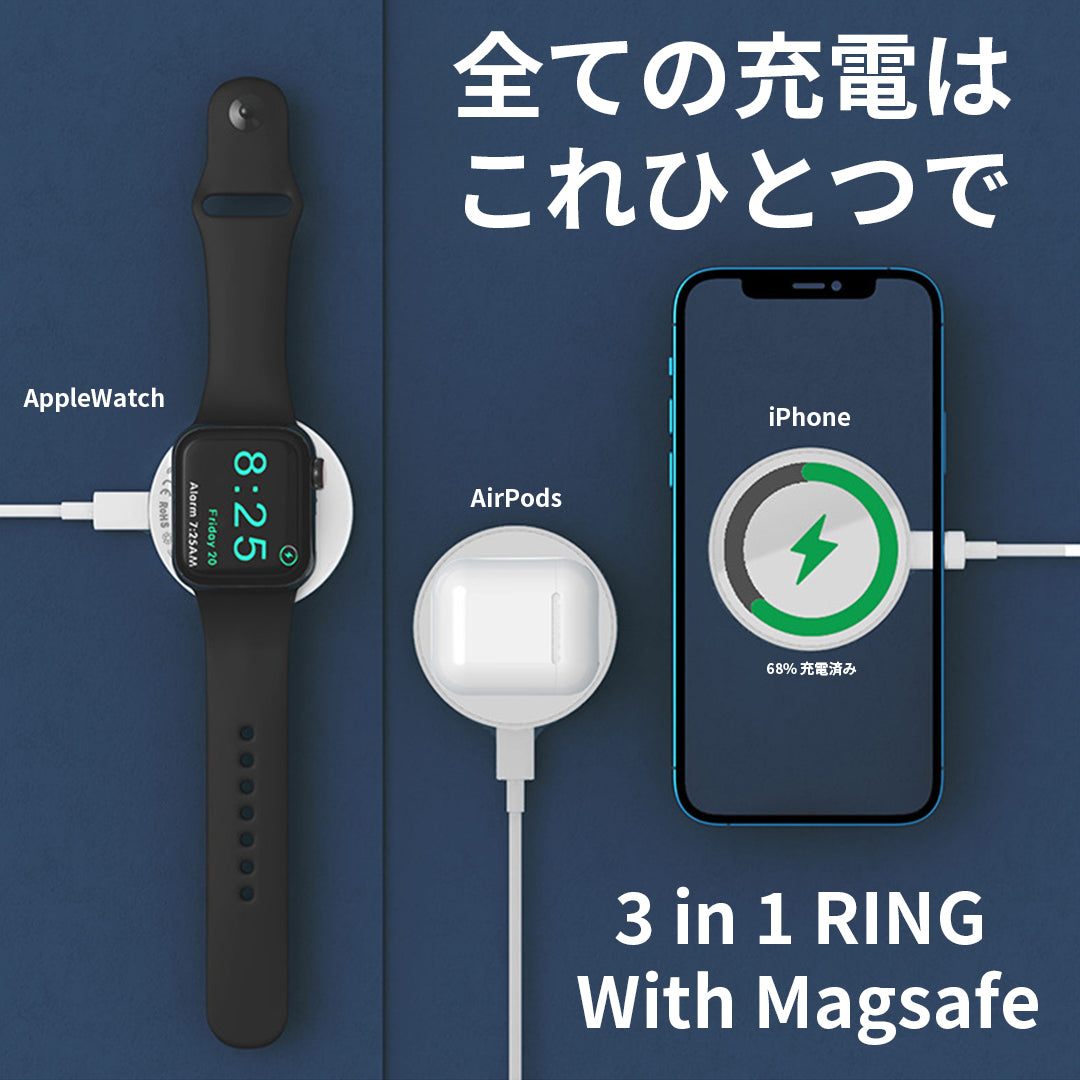 3in1 ワイヤレスチャージャー Ring Magnetic Wireless Charger(A3) 黒 A3 (K)