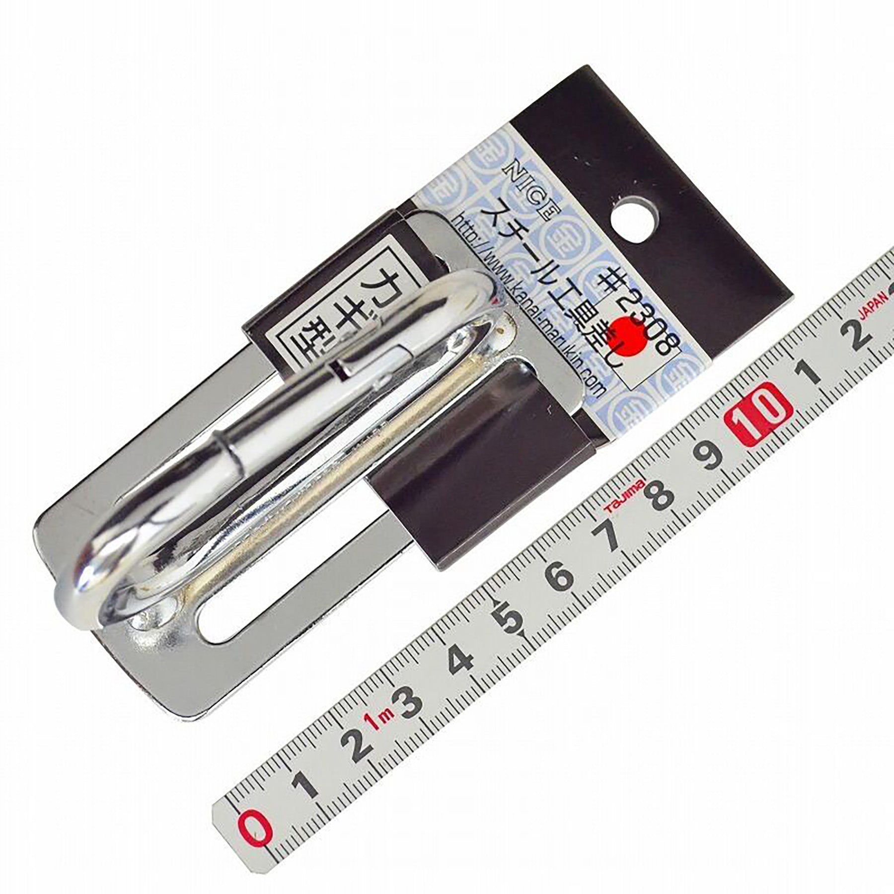 『スチール工具差し #2308』は、耐久性に優れたスチール製のカラビナ工具差し(ツールフック)です。