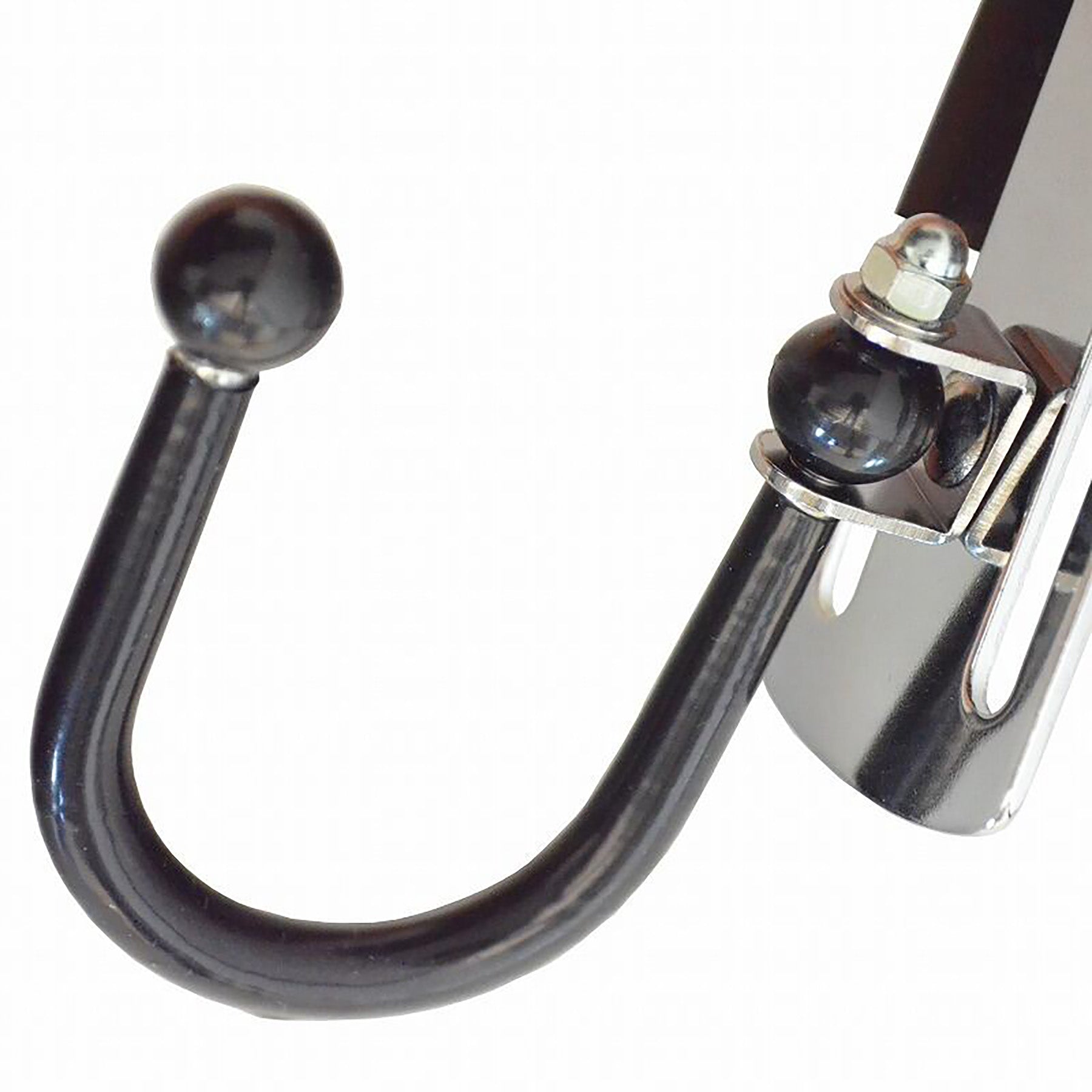 スイング可能な可倒式フックで使用しないときはたたんでコンパクトに収納でき、使用時はスイングタイプで振り子のように左右に可動します。