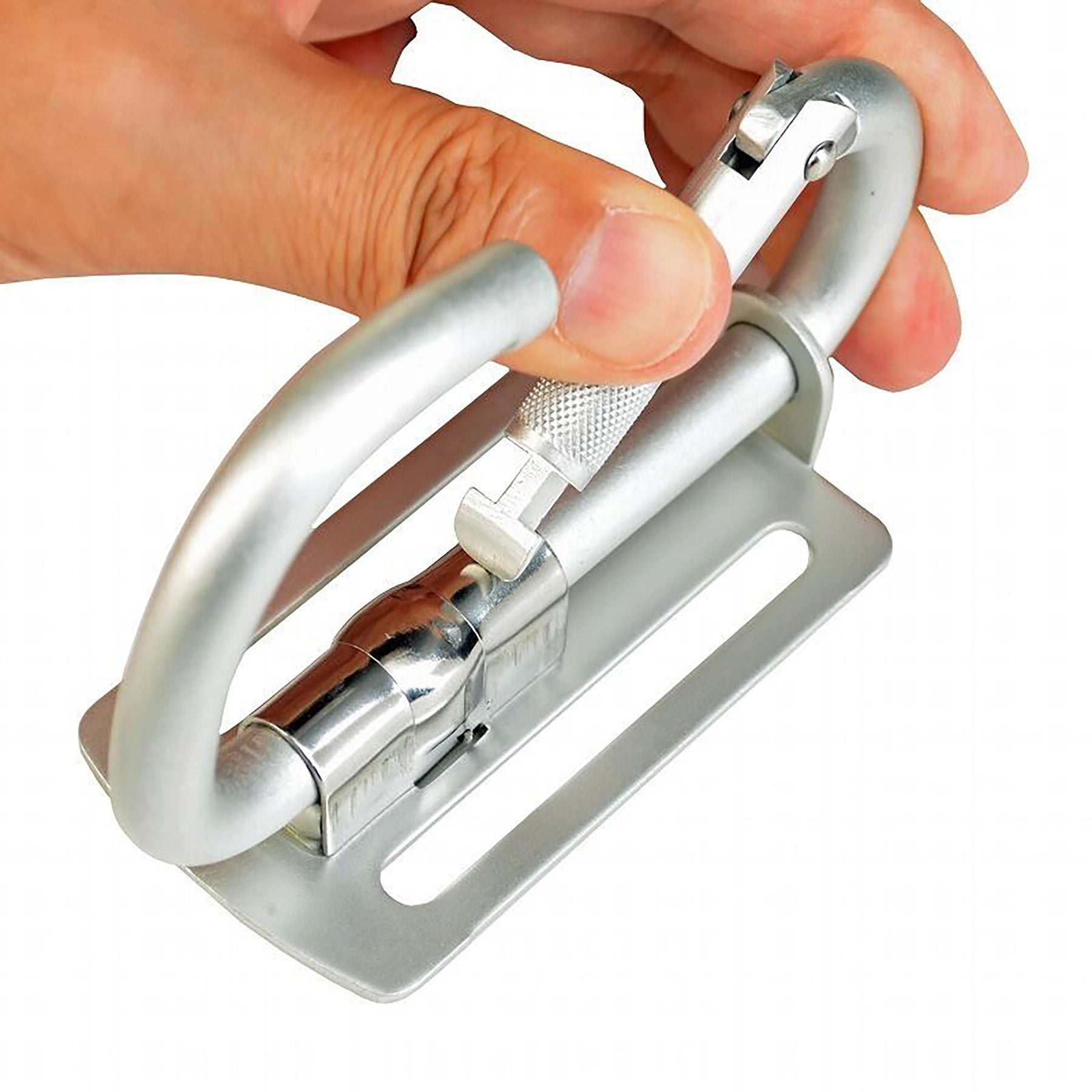 カラビナ部分を左右に倒せる可倒式で、使用しないときはたたんでコンパクトに収納でき、使用時はカラビナの可動部がぐらつきにくい造りです。