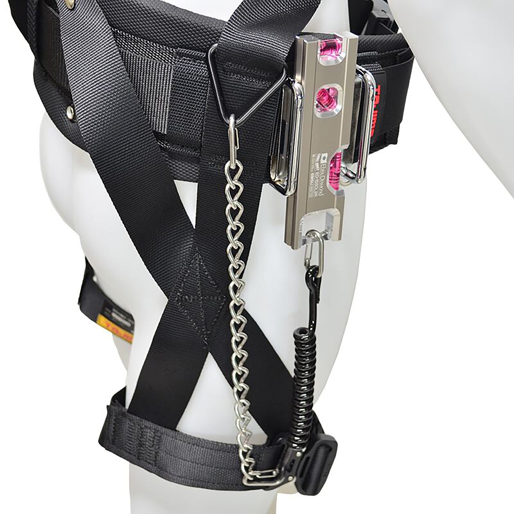 作業用ベルトに通してマグネット付水平器をくっつけて使用します。