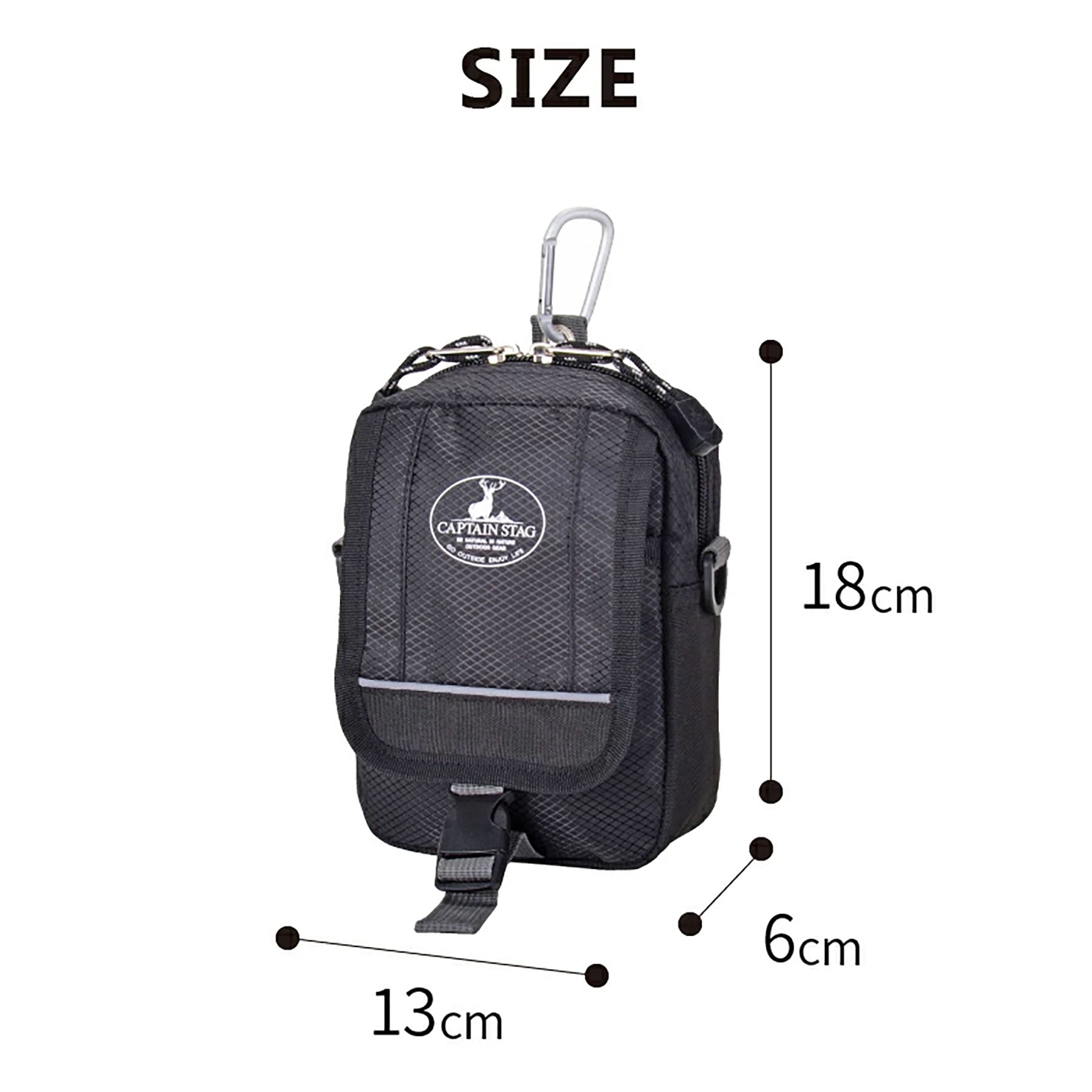 CAPTAIN STAG ミニフラップショルダーバッグ 1308 キャプテンスタッグは、腰に付けたり、バッグに付けたり、ショルダーベルトで肩から掛ける事ができるフラップショルダーです。