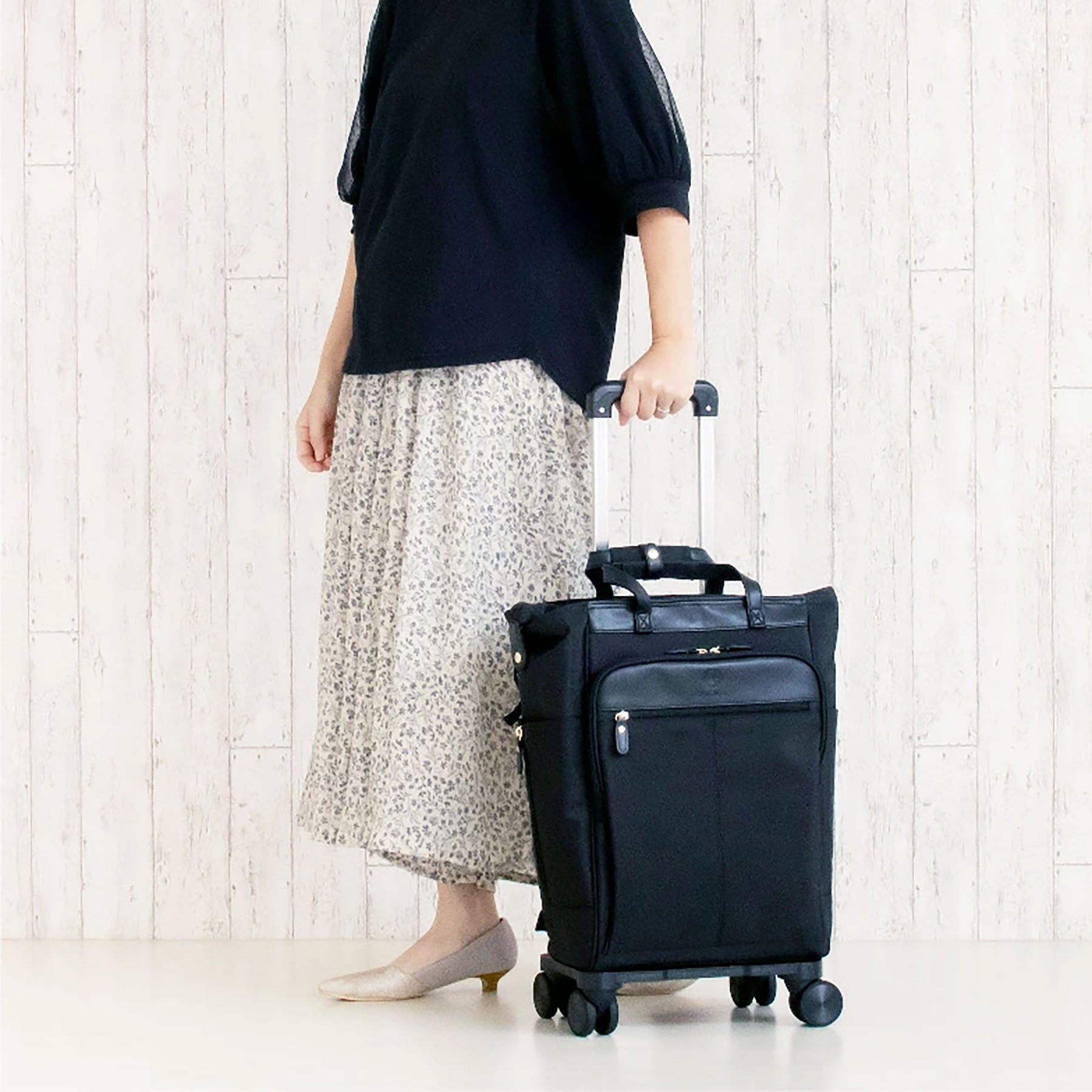 バッグ単体でも使用可能、キャリーは360°回転する大型双輪キャスターで横押し、走行もスムーズです。