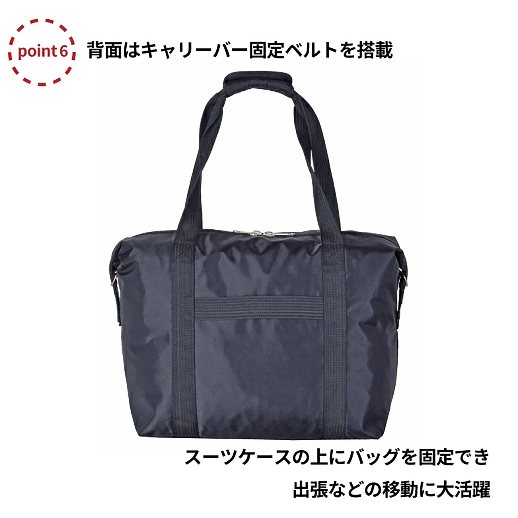 背面はキャリーバー固定ベルトを搭載しておりスーツケースの上にバッグを固定できるため、出張などの移動に大活躍します。