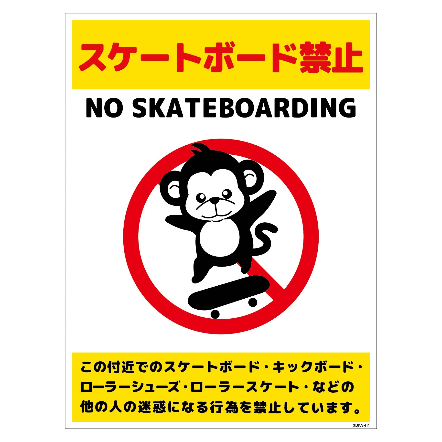 スケートボード禁止標識サル タテPET板SBKS-HP1