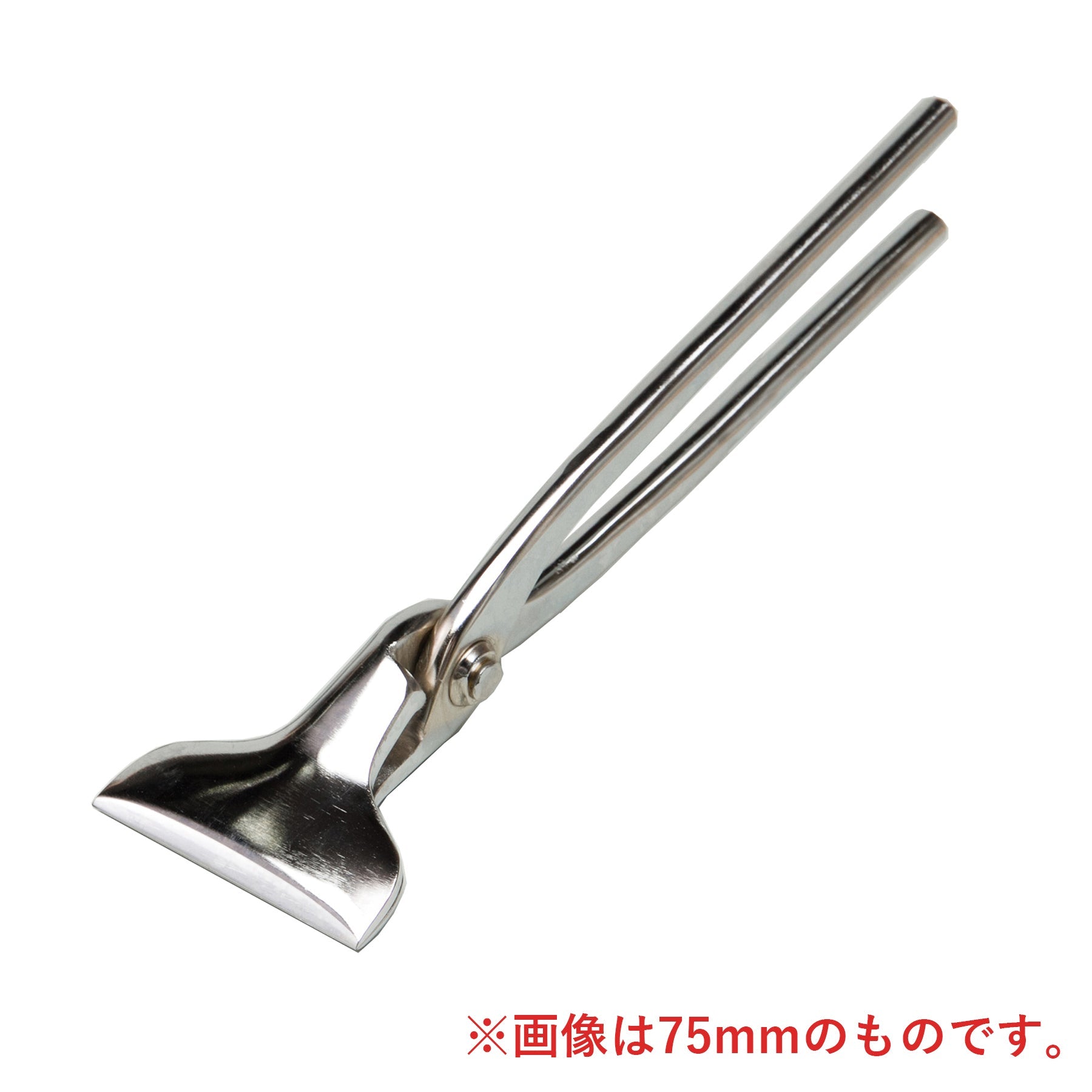 平掴箸 クロームモリブデン鋼 幅75mmは、板金作業用の掴箸です。繊細な板金作業には欠かせない絶妙なかみ合わせは職人が手掛ける製品ならでは。東京の鍛冶屋から引き継いだ東京一光ブランドを守り抜いた逸品です。先が平らになっており、薄板の折り返し部分を平らにつぶすことができます。