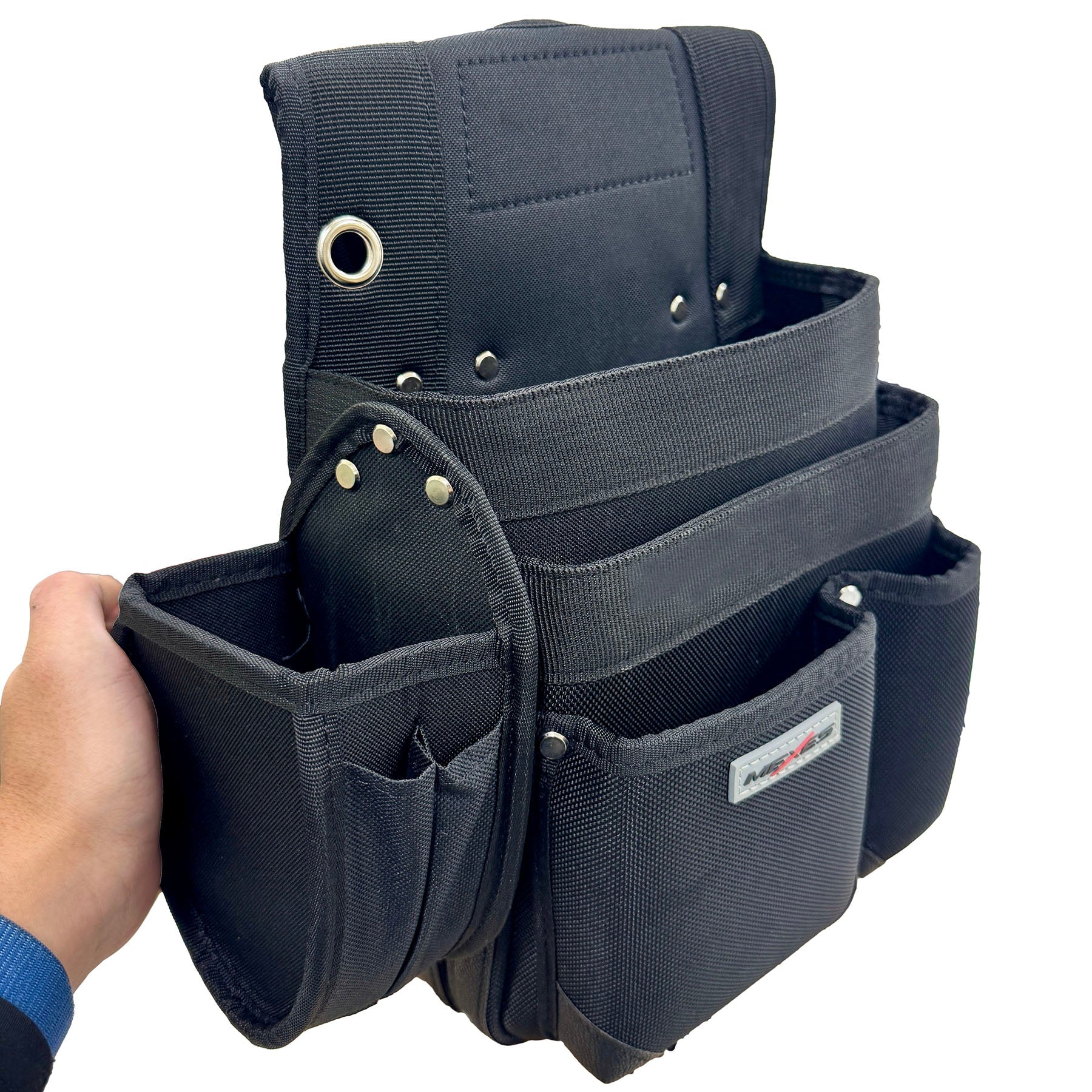 釘やボルトなどを整理して収納できる複数のポケットが備わっており、作業に必要な工具をまとめて持ち運べます。