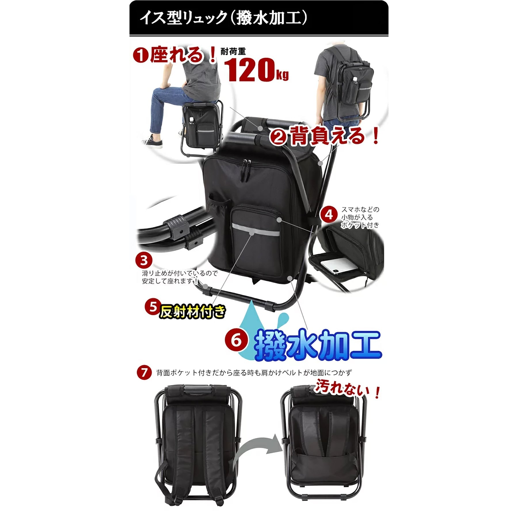イス型リュック 防災22点セットは、リュックとイス両方が一緒になった便利なリュックの防災セットです。