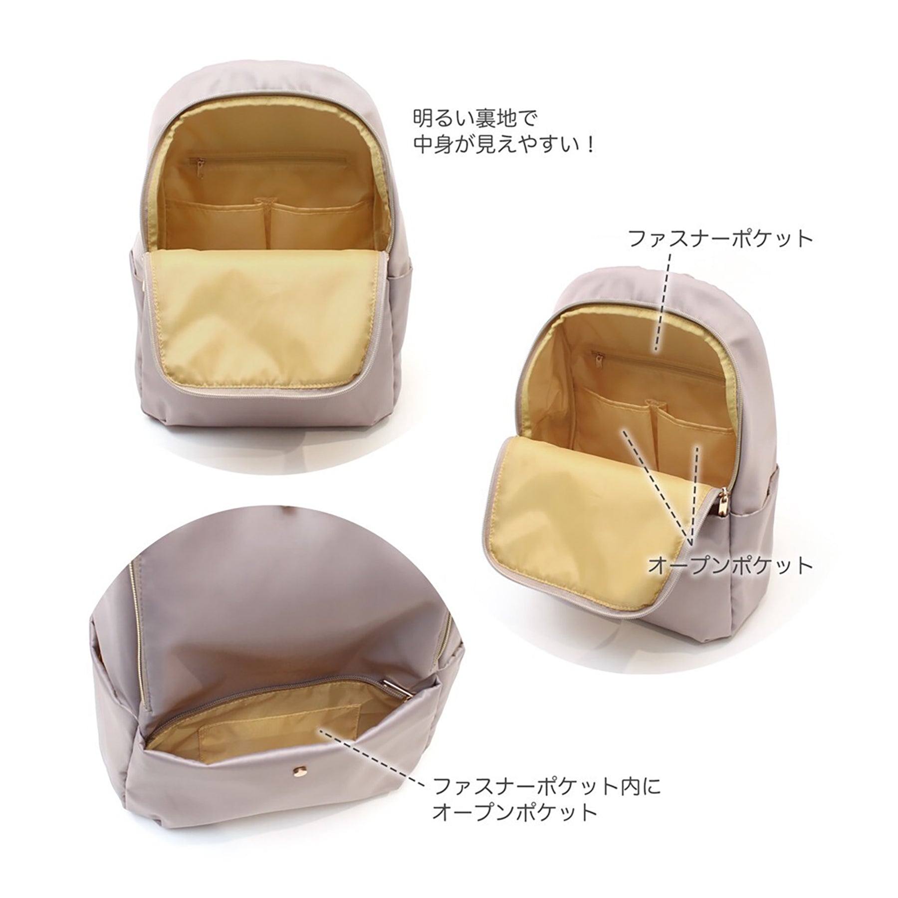 配色裏地が明るく内装が見やすい構造です。