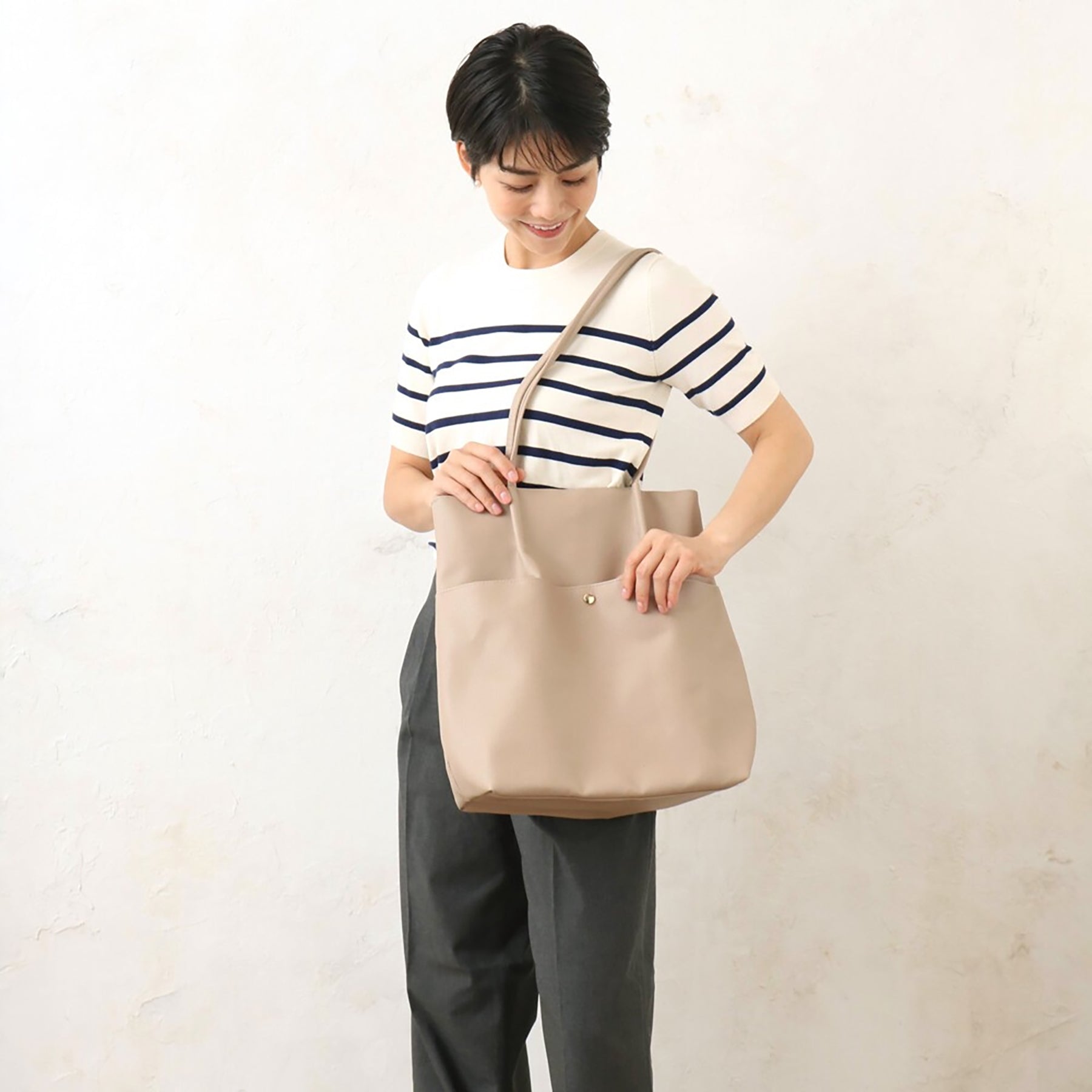 合皮シンプルタックトートバッグは、クッタリ感がかわいい、A4サイズがすっぽり入る万能トートバッグです。