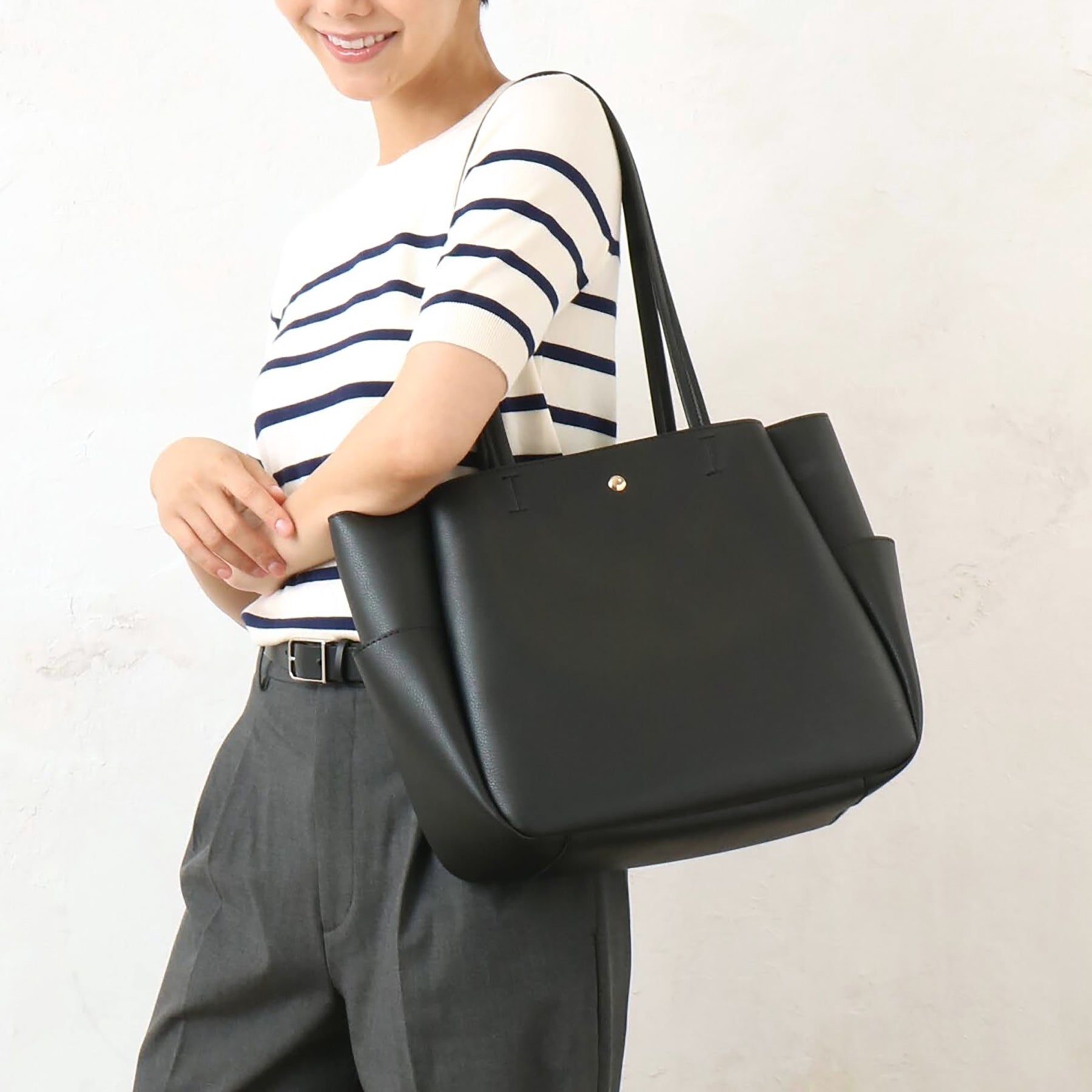 軽量合皮ふっくらA4トートは、前・背に仕切りがあり荷物の定位置を決めて入れるだけで、簡単に整理ができるトートバッグです。