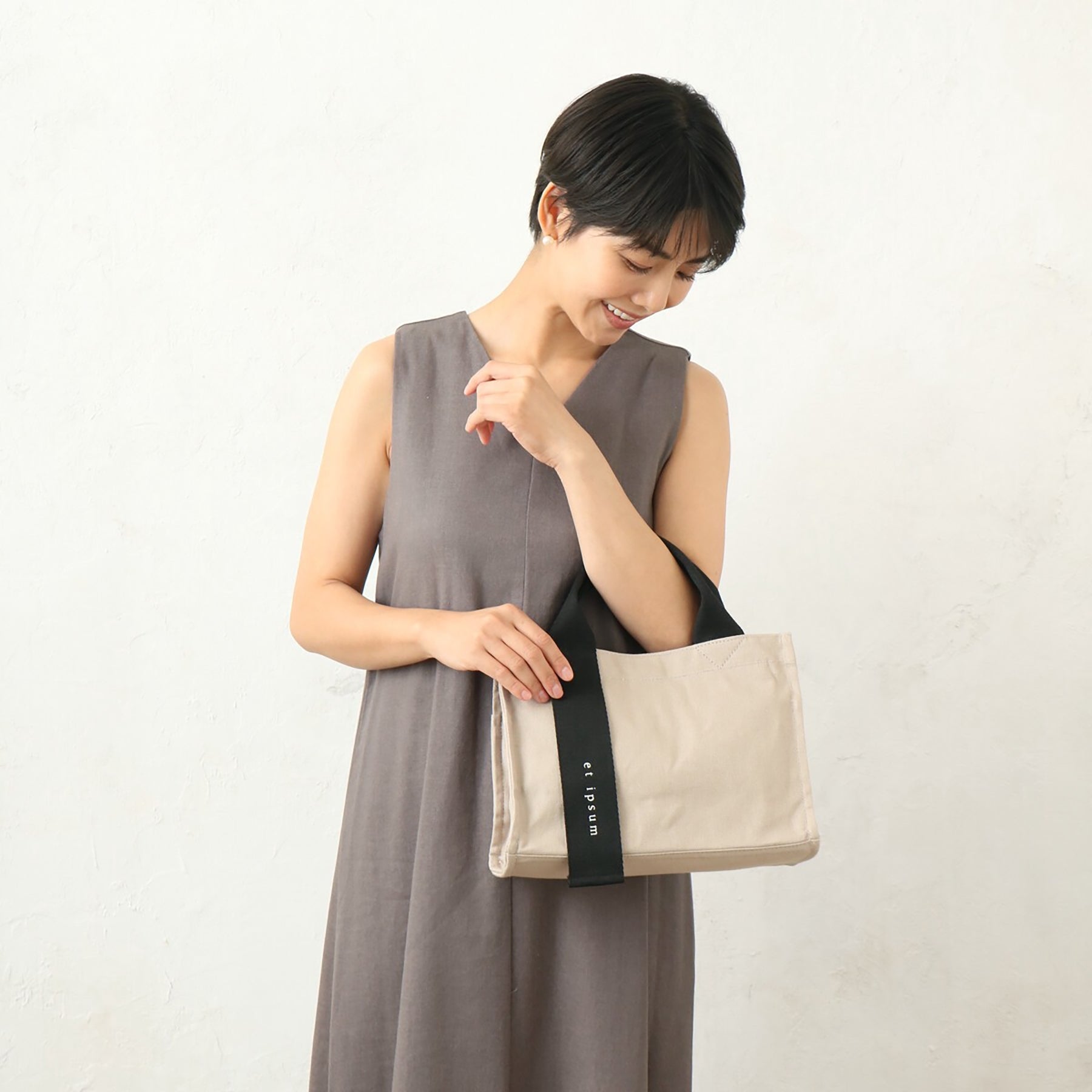 オッドハンドルトートは、吊りポケットが荷物の目隠しフラップにもなる安心仕様のトートバッグです。