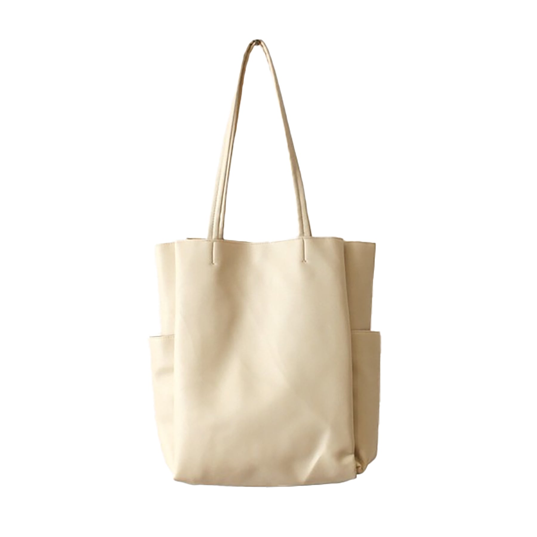 柔らかい合皮を使用しているので肩にかけて持つ時も馴染みやすく、オンでもオフでもデイリーにお使いいただけるトートです。