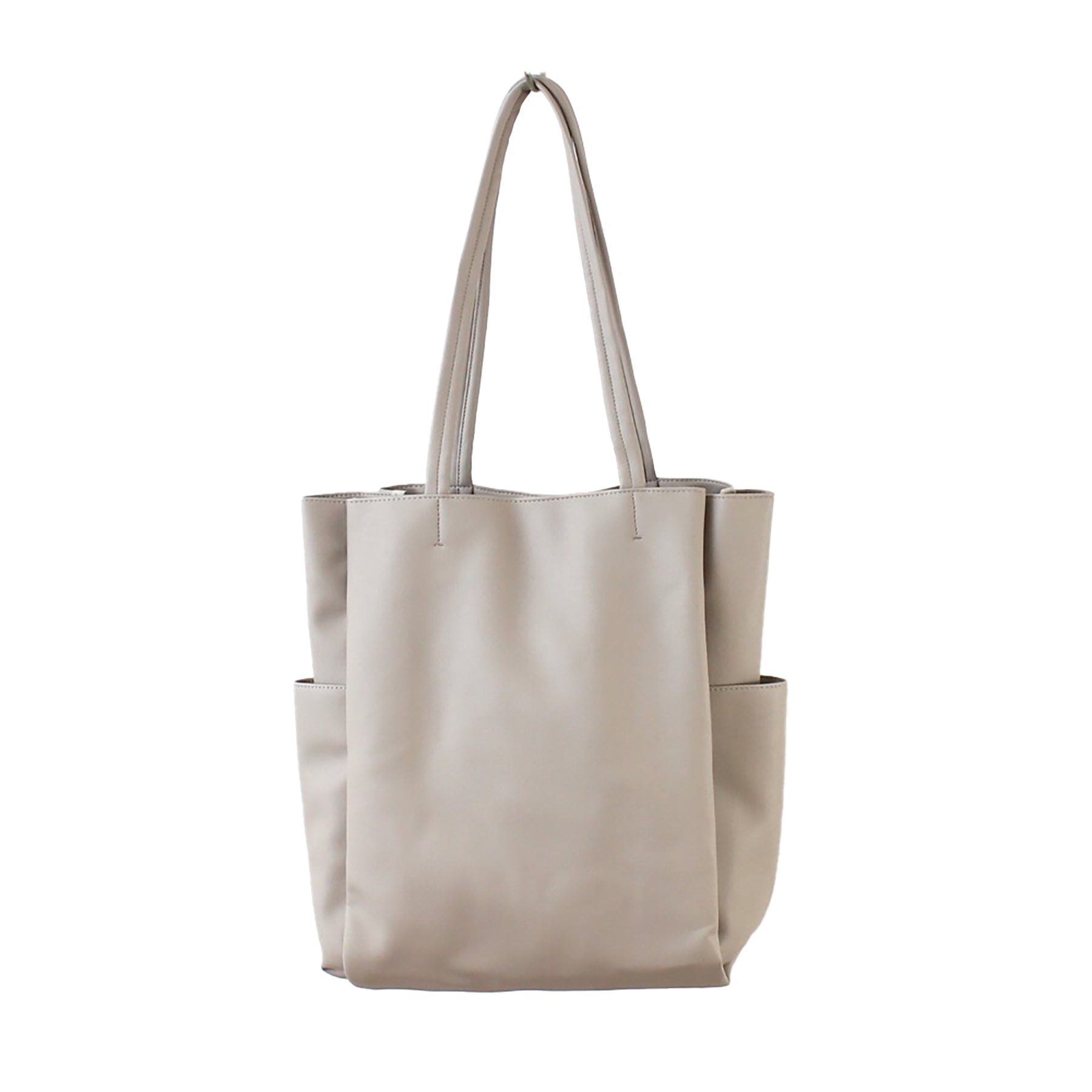 柔らかい合皮を使用しているので肩にかけて持つ時も馴染みやすく、オンでもオフでもデイリーにお使いいただけるトートです。