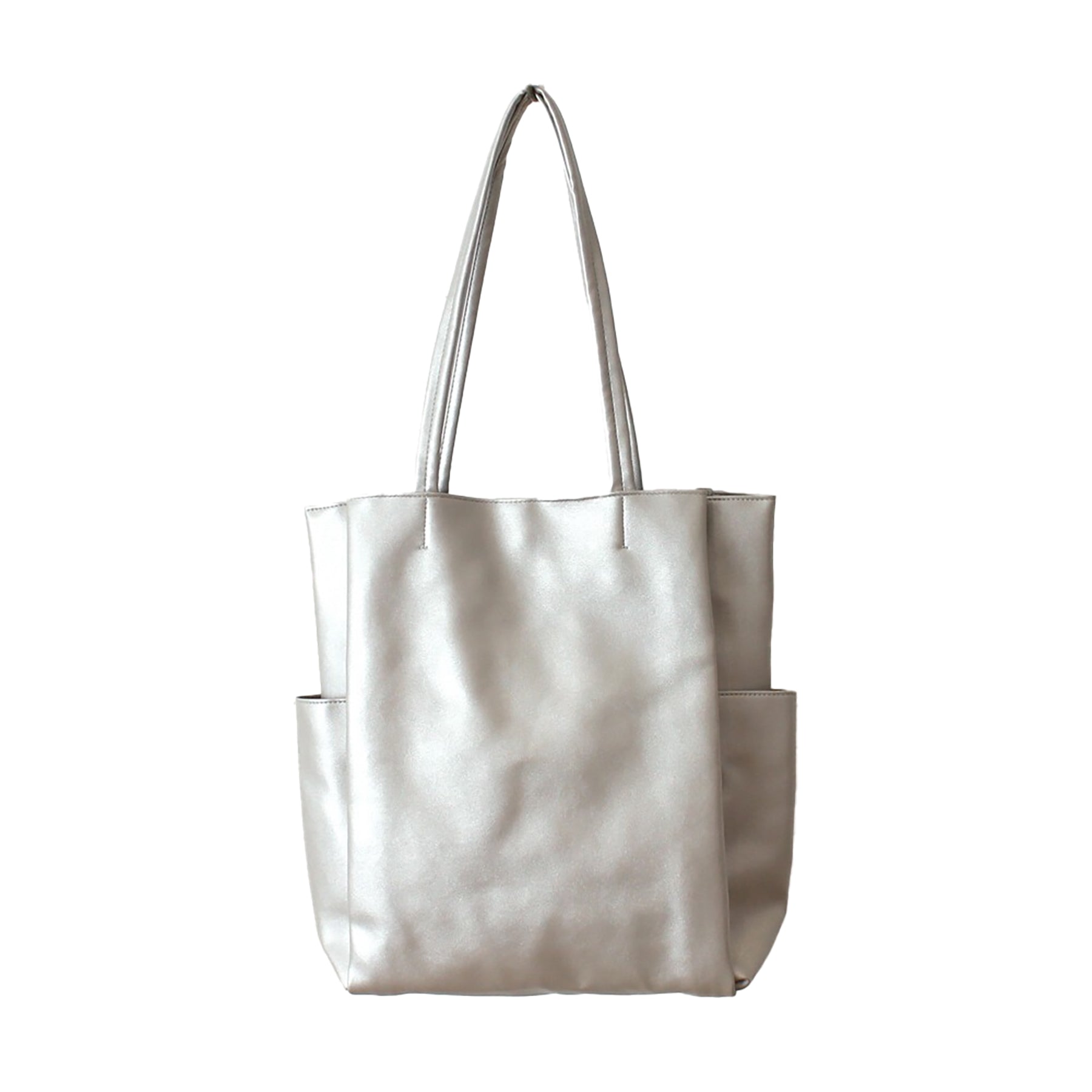 柔らかい合皮を使用しているので肩にかけて持つ時も馴染みやすく、オンでもオフでもデイリーにお使いいただけるトートです。