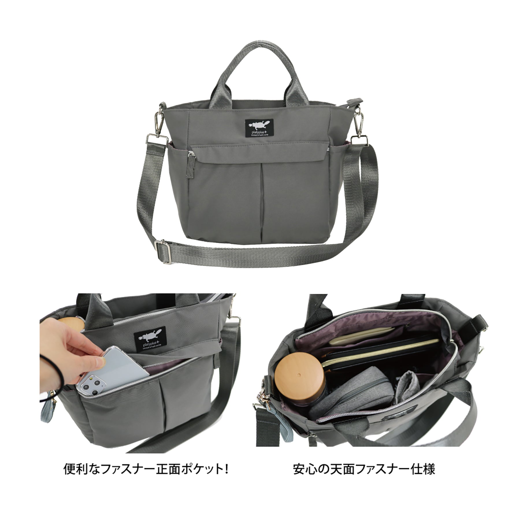 マットツイルミディ2wayトートは、お弁当やペットボトルなども収納できる大容量のトートバッグです。