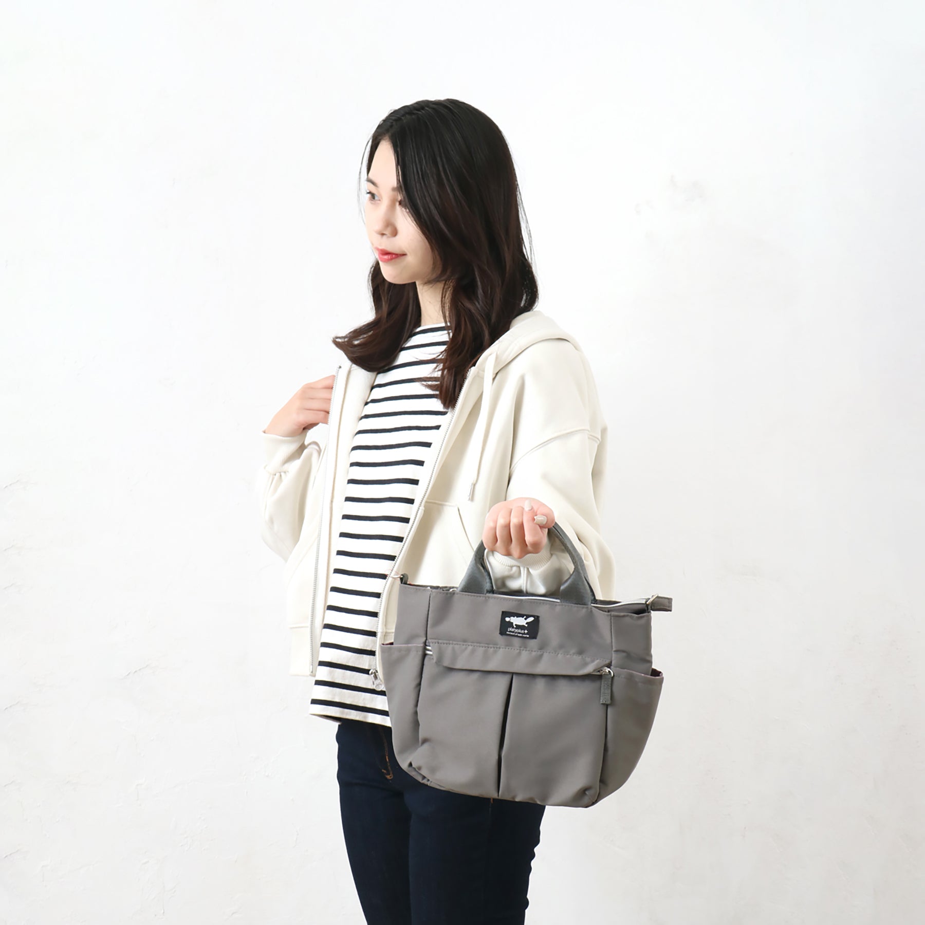 マットツイルミディ2wayトートは、お弁当やペットボトルなども収納できる大容量のトートバッグです。
