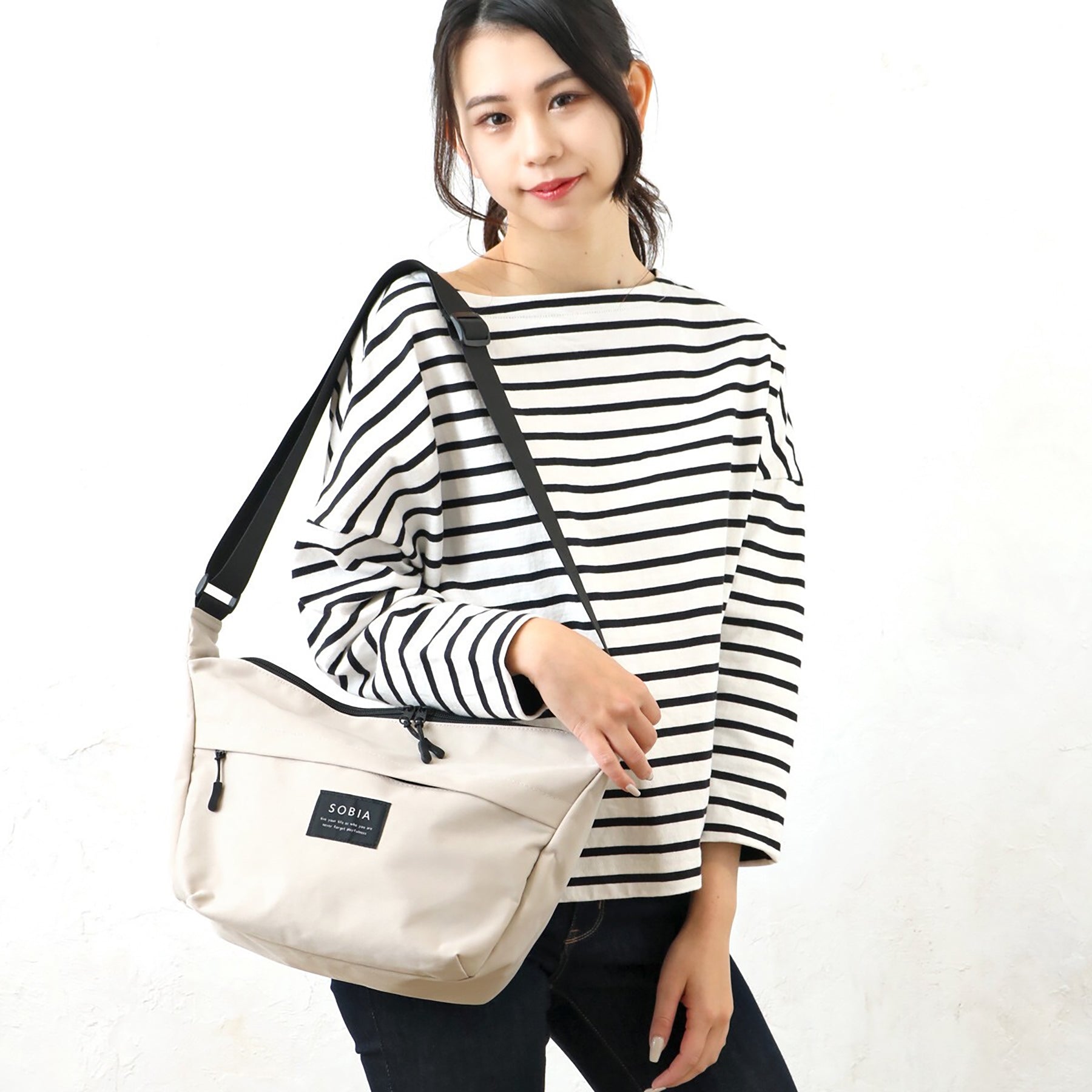 はっ水ナイロン舟形ラージショルダーは、はっ水ナイロン生地を使った人気の舟形ショルダーの一回り大きいラージサイズのショルダーバッグです。