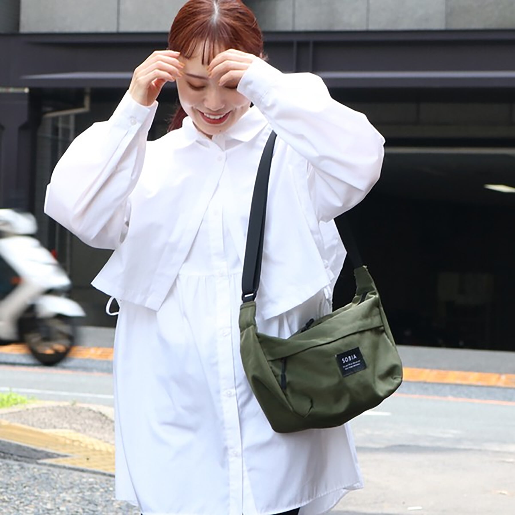 はっ水ナイロン舟形ショルダーは、はっ水ナイロン生地を使った舟形ショルダーです。