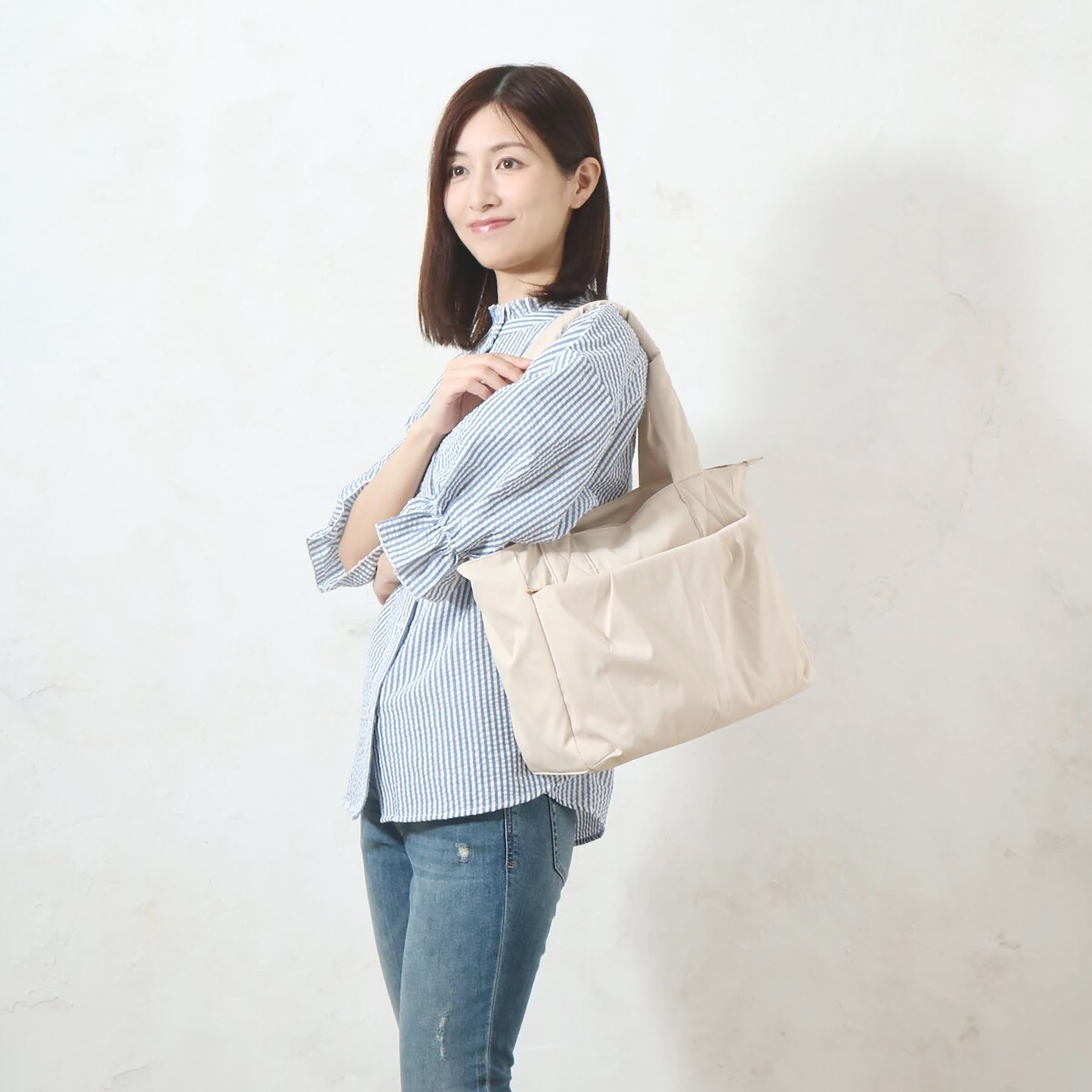 肩にやさしい軽量トートは、肉厚でクッション性の高い持ち手で、書類や荷物をたくさん入れても肩が痛くなりにくい、からだにやさしいトートバッグです。