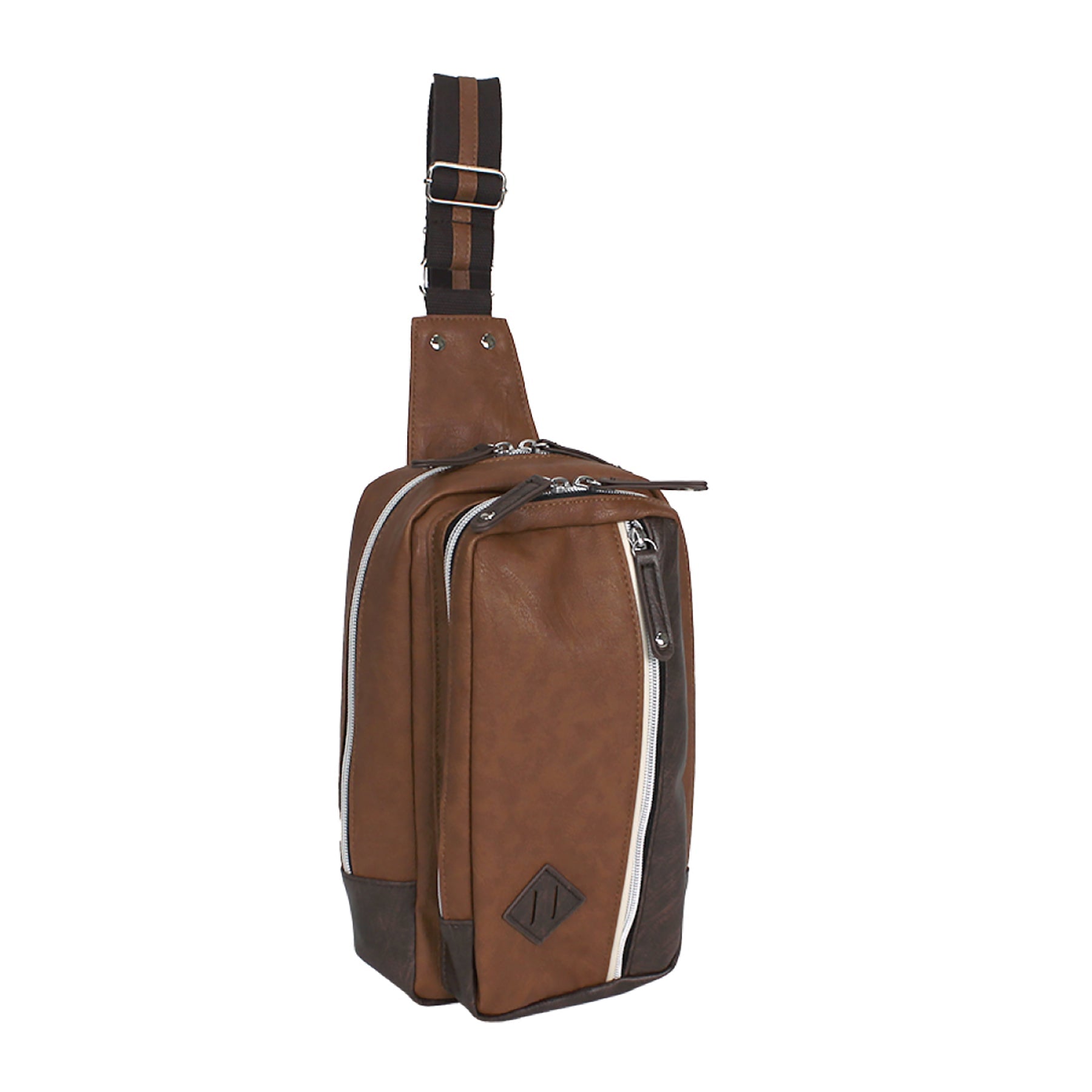 合皮ボディバッグは、ファスナーポケット充実で見た目以上の収納力があるボディバッグです。