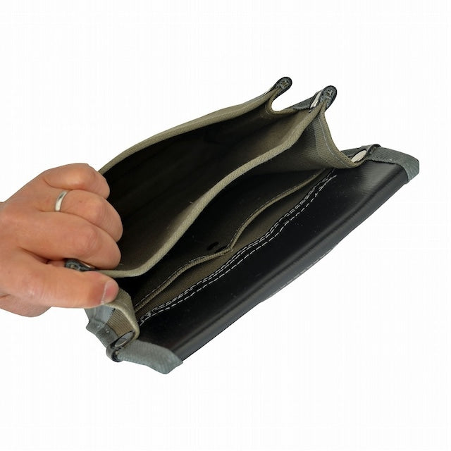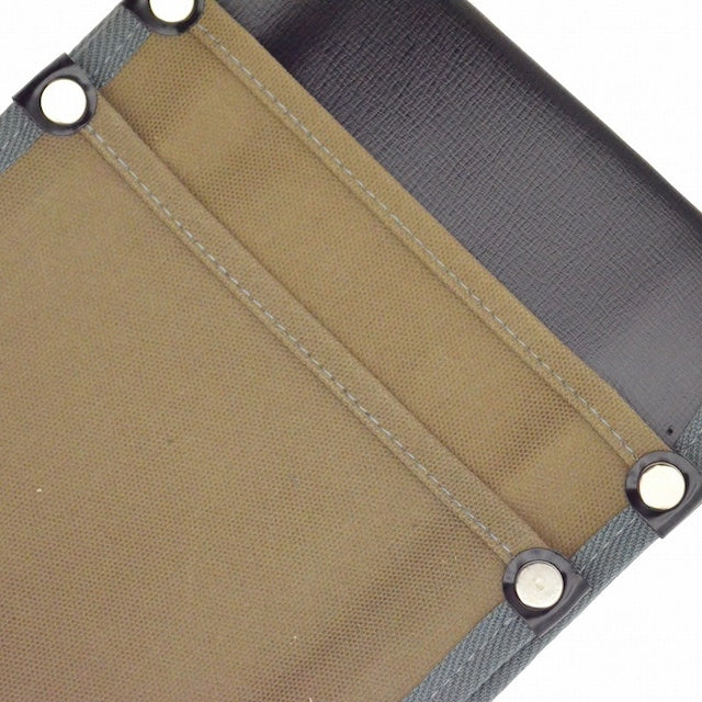 ポケットは奥の段が厚み約40mm、手前の段が厚み約25mmあり、左右側面には細長い工具やペン等を差すのに便利な小ポケット付で、様々な工具の収納が可能です。
