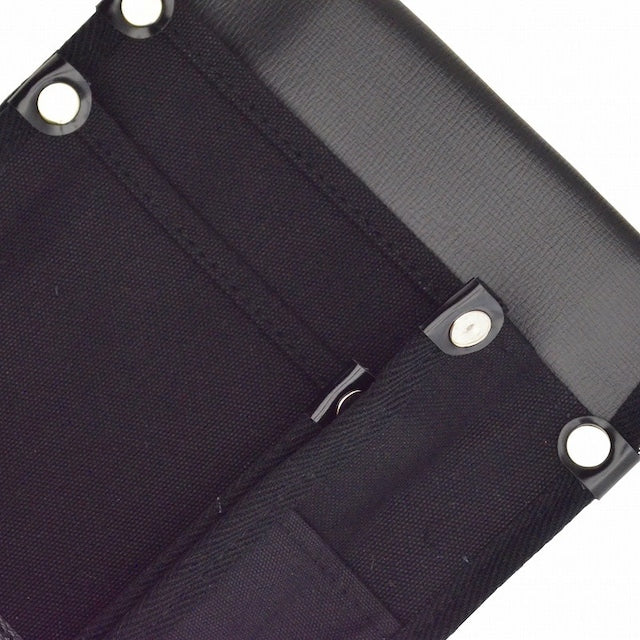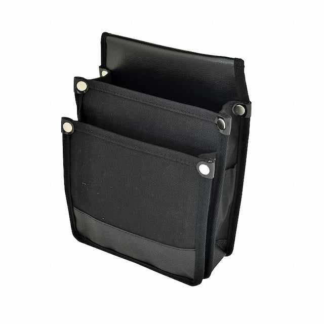 ポケットは奥の段が厚み約40mm、手前の段が厚み約25mmあり、左右側面には細長い工具やペン等を差すのに便利な小ポケット付で、様々な工具の収納が可能です。