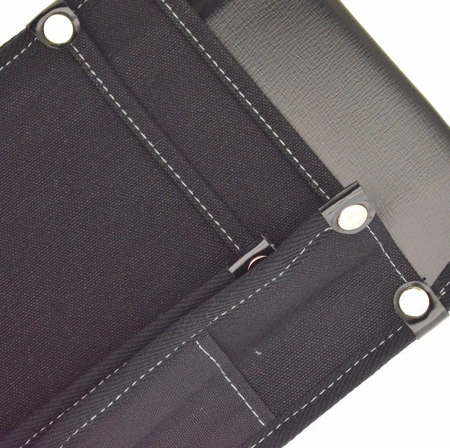 ポケットは奥の段が厚み約40mm、手前の段が厚み約25mmあり、左右側面には細長い工具やペン等を差すのに便利な小ポケット付で、様々な工具の収納が可能です。