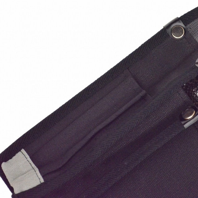 ポケットは奥の段が厚み約40mm、手前の段が厚み約25mmあり、左右側面には細長い工具やペン等を差すのに便利な小ポケット付で、様々な工具の収納が可能です。