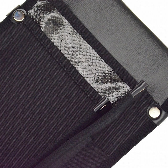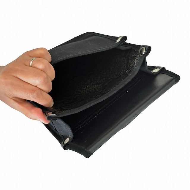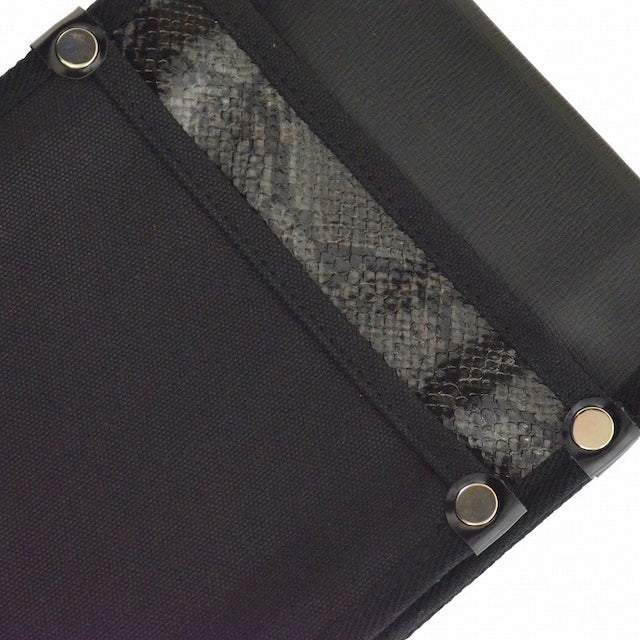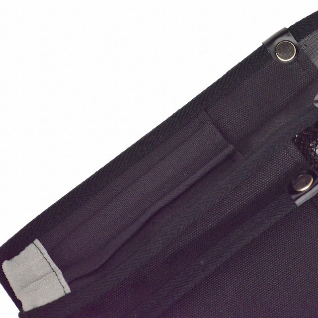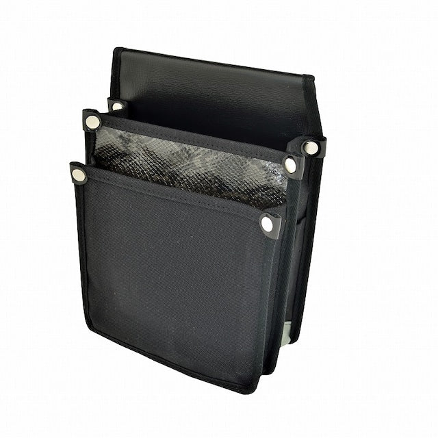 『内側ポケット付帆布/黒蛇柄 YK-11 黒』は腰袋の一部分を黒蛇柄にした、しっかりとした厚みのある腰帆布製の2段タイプの腰袋です。
