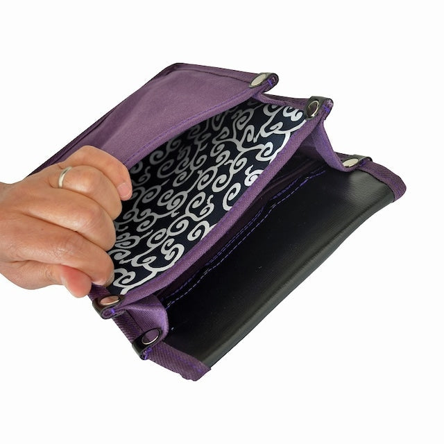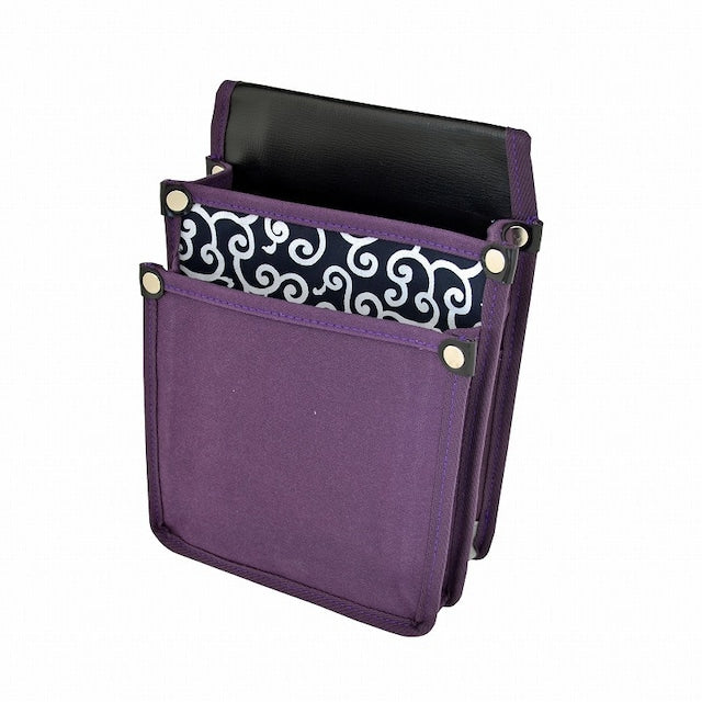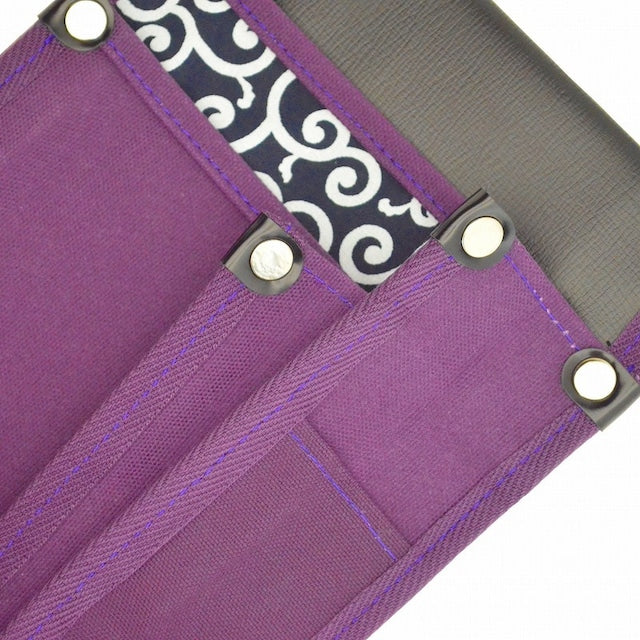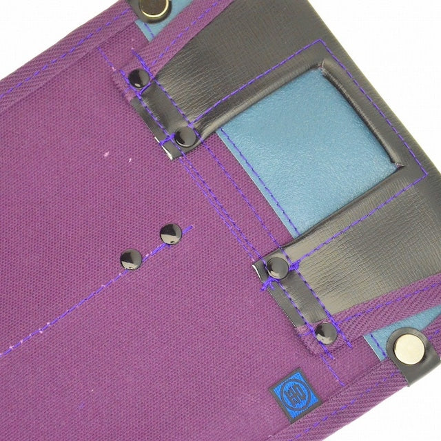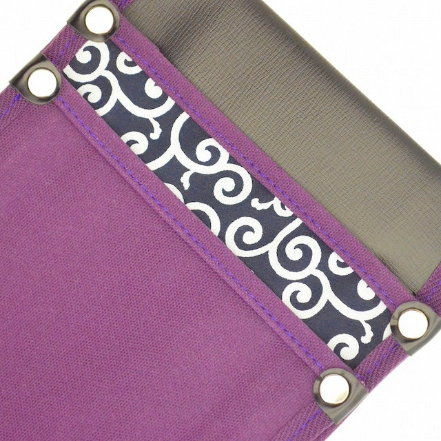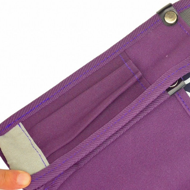 『内側ポケット付帆布/紺和柄 YK-23 紫』は、腰袋の一部分を紺和柄(唐草模様) にした帆布製の腰袋です。