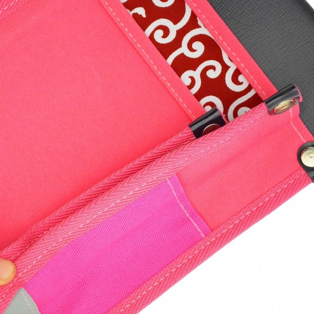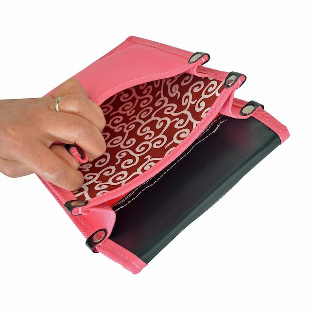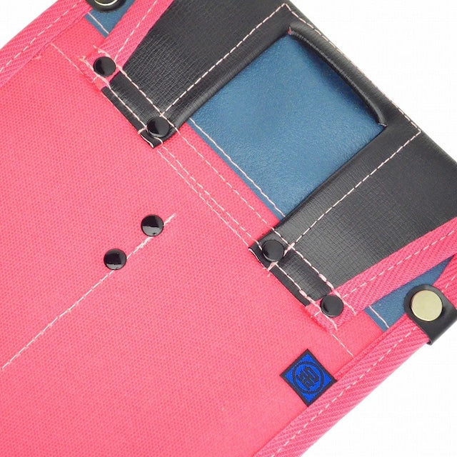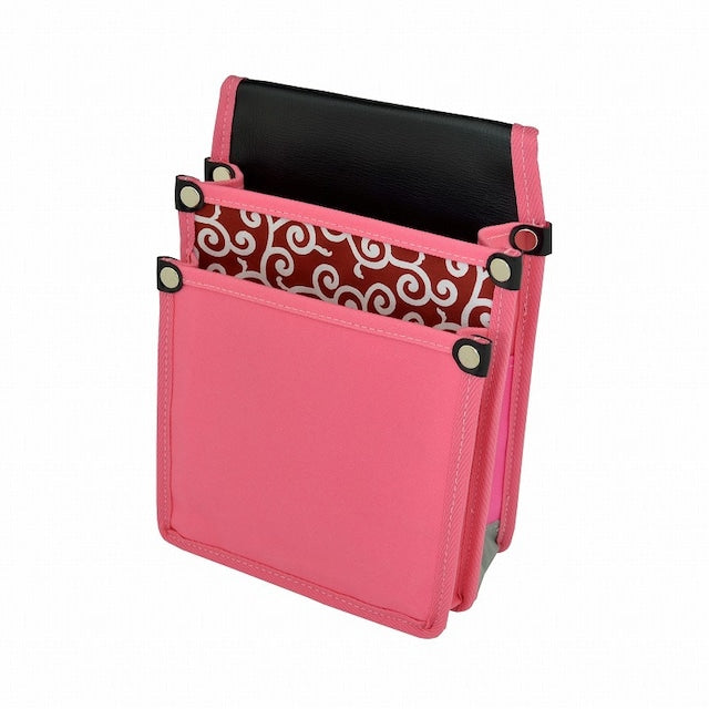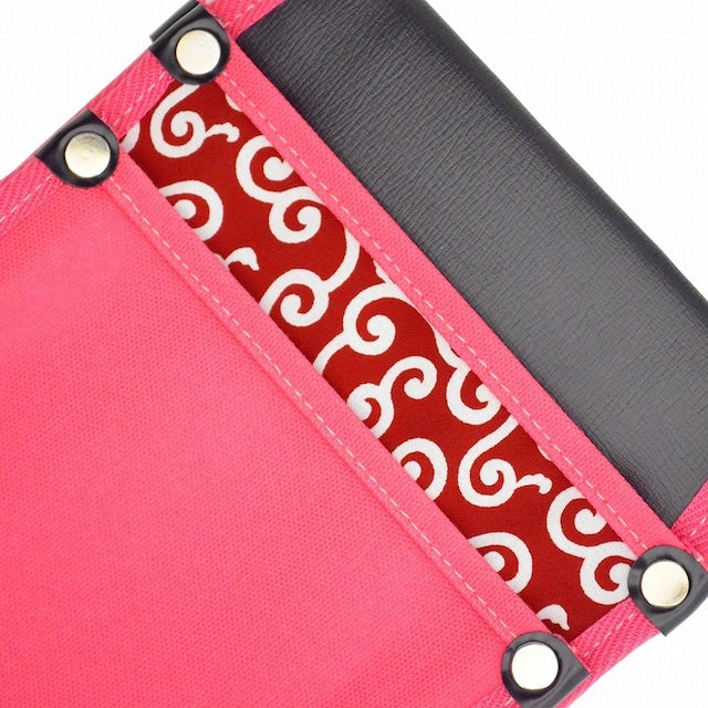 『内側ポケット付帆布/赤和柄 YK-24 桃』は、腰袋の一部分を赤和柄(唐草模様) にした帆布製の腰袋です。
