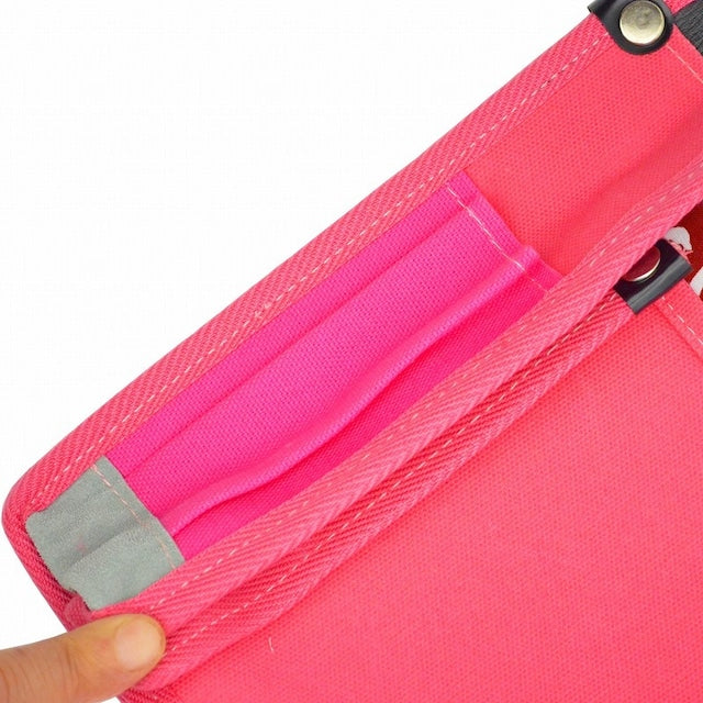 ポケットは奥の段が厚み約40mm、手前の段が厚み約25mmあり、左右側面には細長い工具やペン等を差すのに便利な小ポケット付で、様々な工具の収納が可能です。