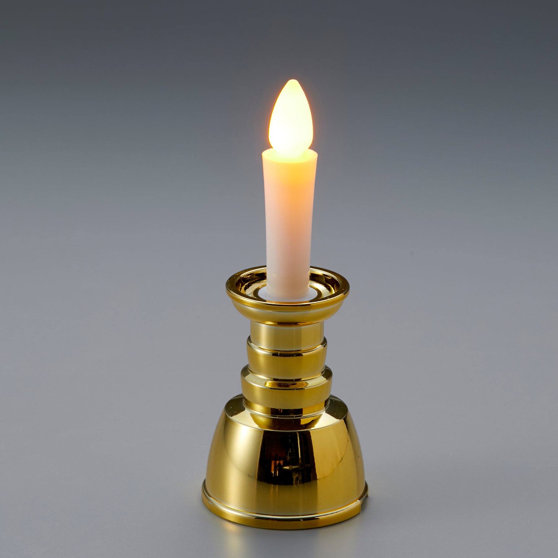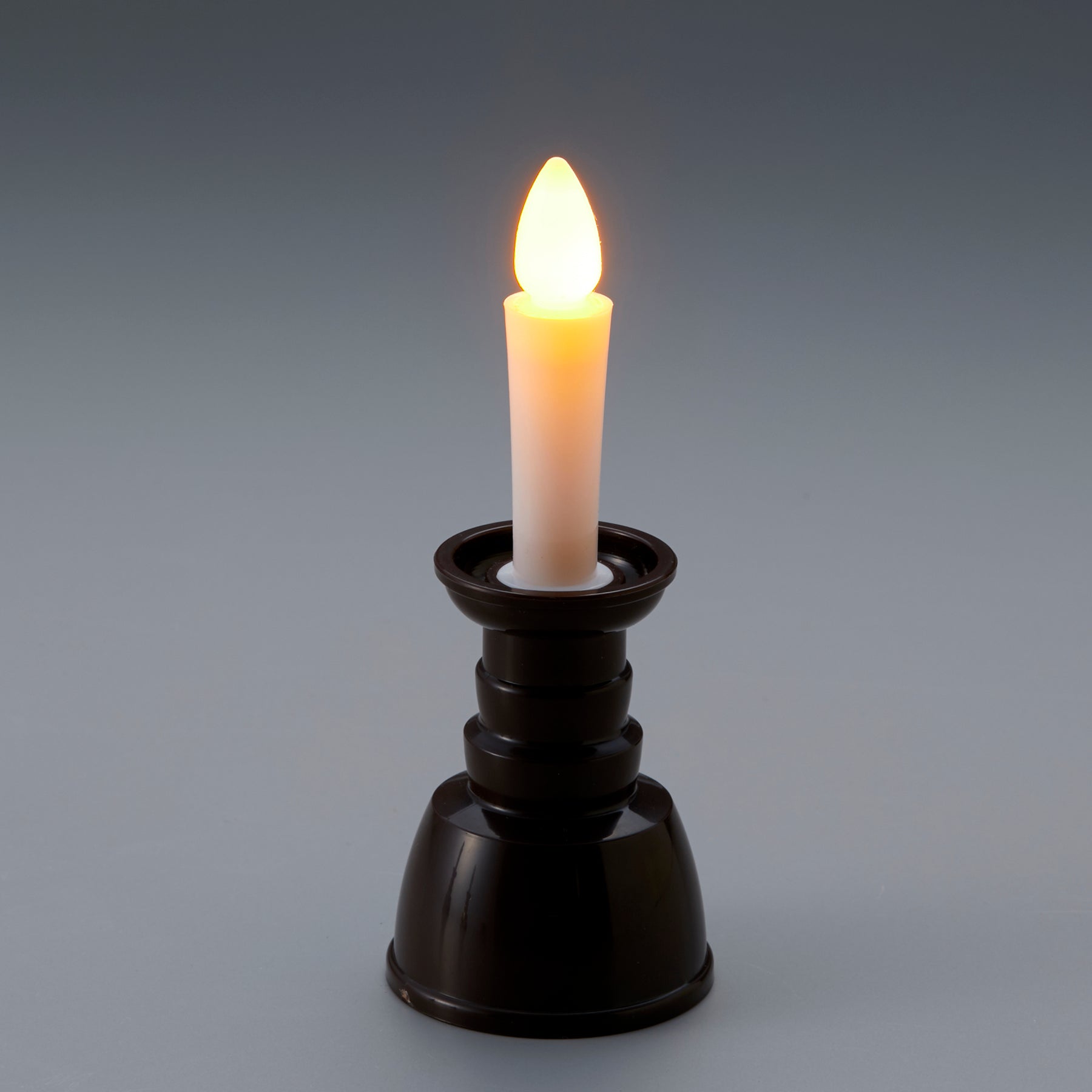 火を使わない安全・安心の燭台付のろうそくで、スイッチONすれば、ろうそくの先端が黄色く光ります。