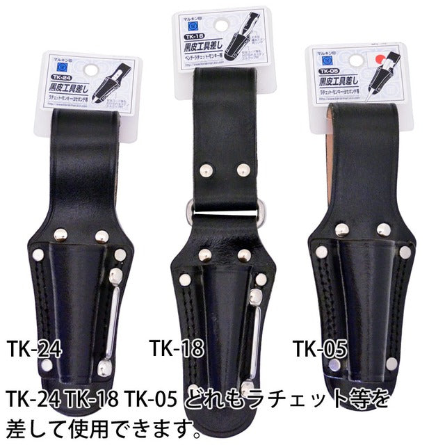 『黒皮工具差し TK-05』は、ラチェットレンチ・モンキーレンチ・ヨセポンチ(M20)等を収納するのに便利な、1丁差しタイプの黒皮工具差しです。