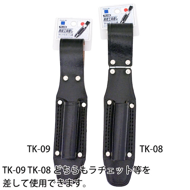 『黒皮工具差し TK-08』は、ラチェットレンチ・モンキー・バール等を収納するのに便利な、スリムな1丁差しタイプの黒皮工具差しです。