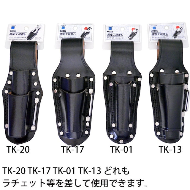『黒皮工具差し TK-20』は、ペンチ・ラチェットレンチ・モンキーレンチ等を収納するのに便利な、2段差しタイプの黒皮工具差しです。