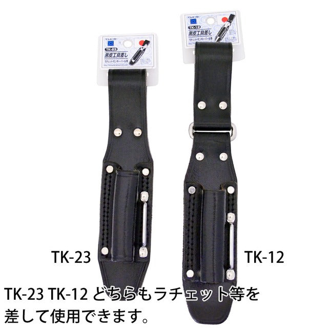 『黒皮工具差し TK-23』は、ラチェットペンチ・モンキーレンチ・バール等を収納するのに便利な、スリムな1丁差しタイプの黒皮工具差しです。