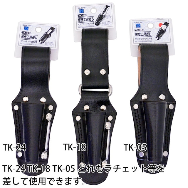 『黒皮工具差し TK-24』は、ラチェットペンチ・モンキーレンチ・ヨセポンチ(M20・M22)等を収納するのに便利な、スリムな1丁差しタイプの黒皮工具差しです。