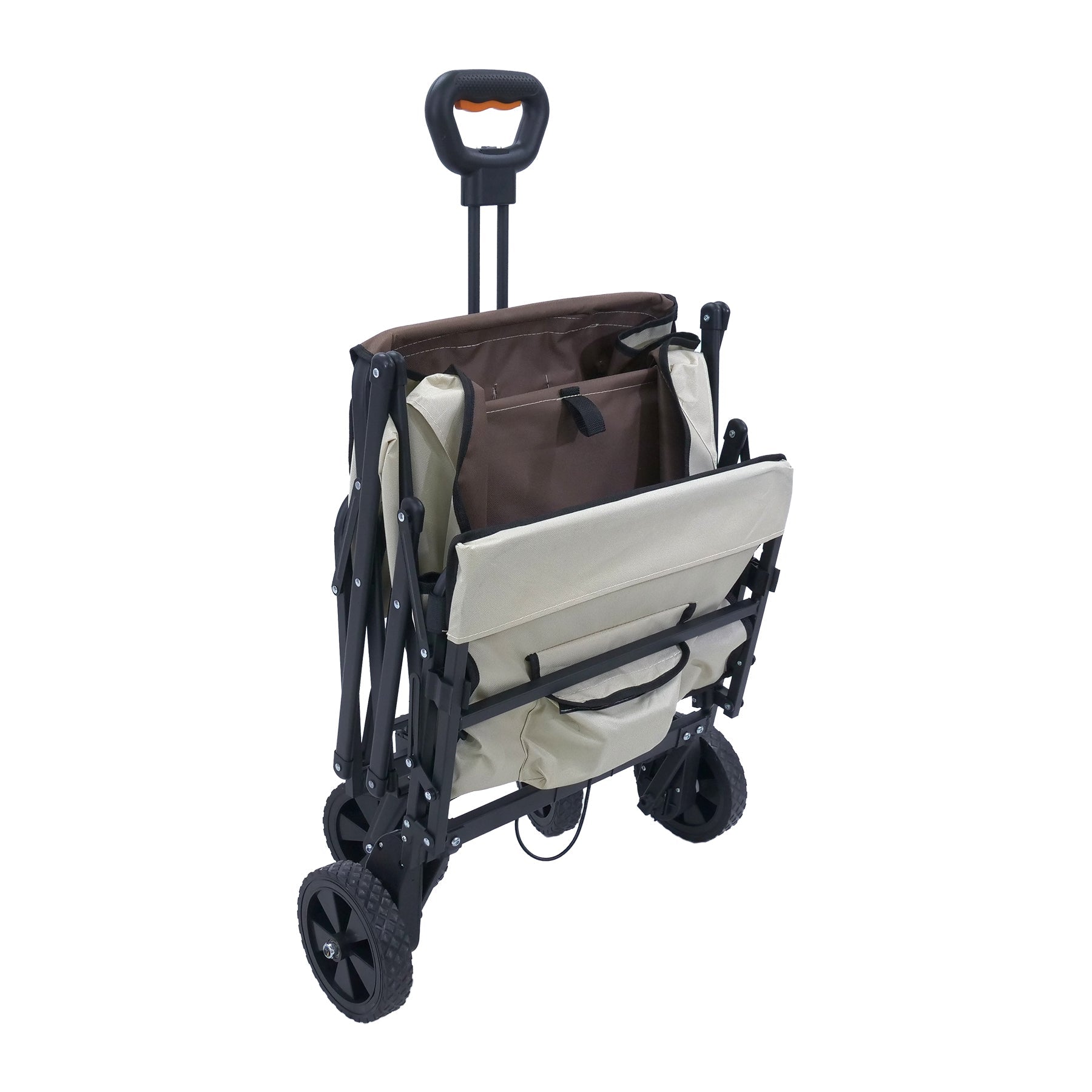 重いキャンプギアも、坂道も、このワゴンがあればラクラク移動。