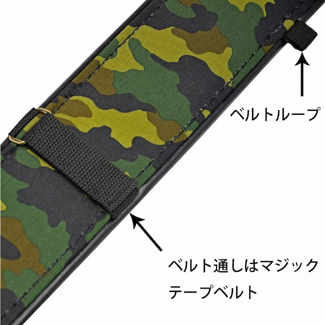 『胴当てベルト/国防迷彩柄』は、前面を国防迷彩柄布張りにした胴当てベルトです。