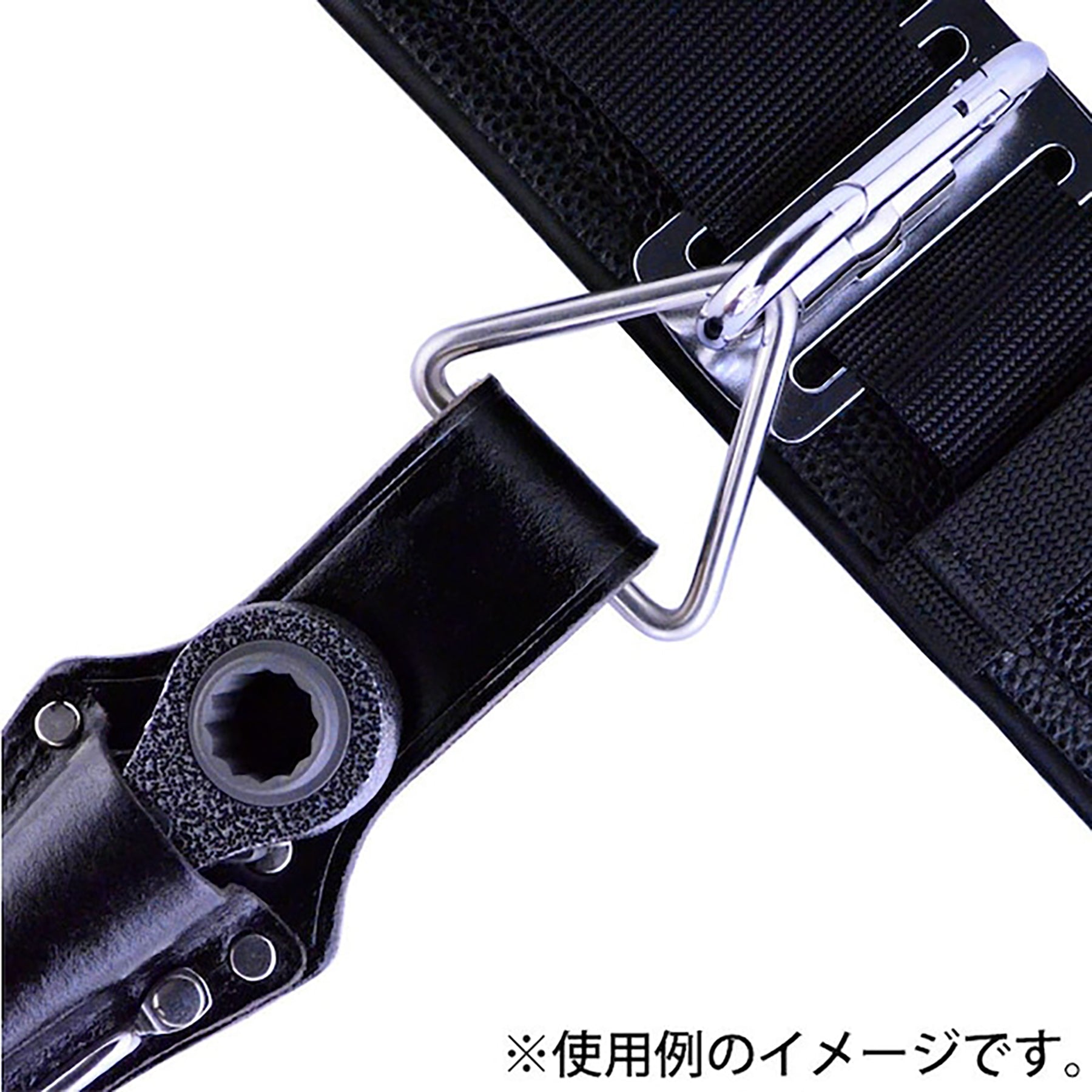 工具差しや腰袋などのベルト通し部に通すことで、カラビナ工具差し等に装着できるようになり、腰道具への着脱が楽になります。