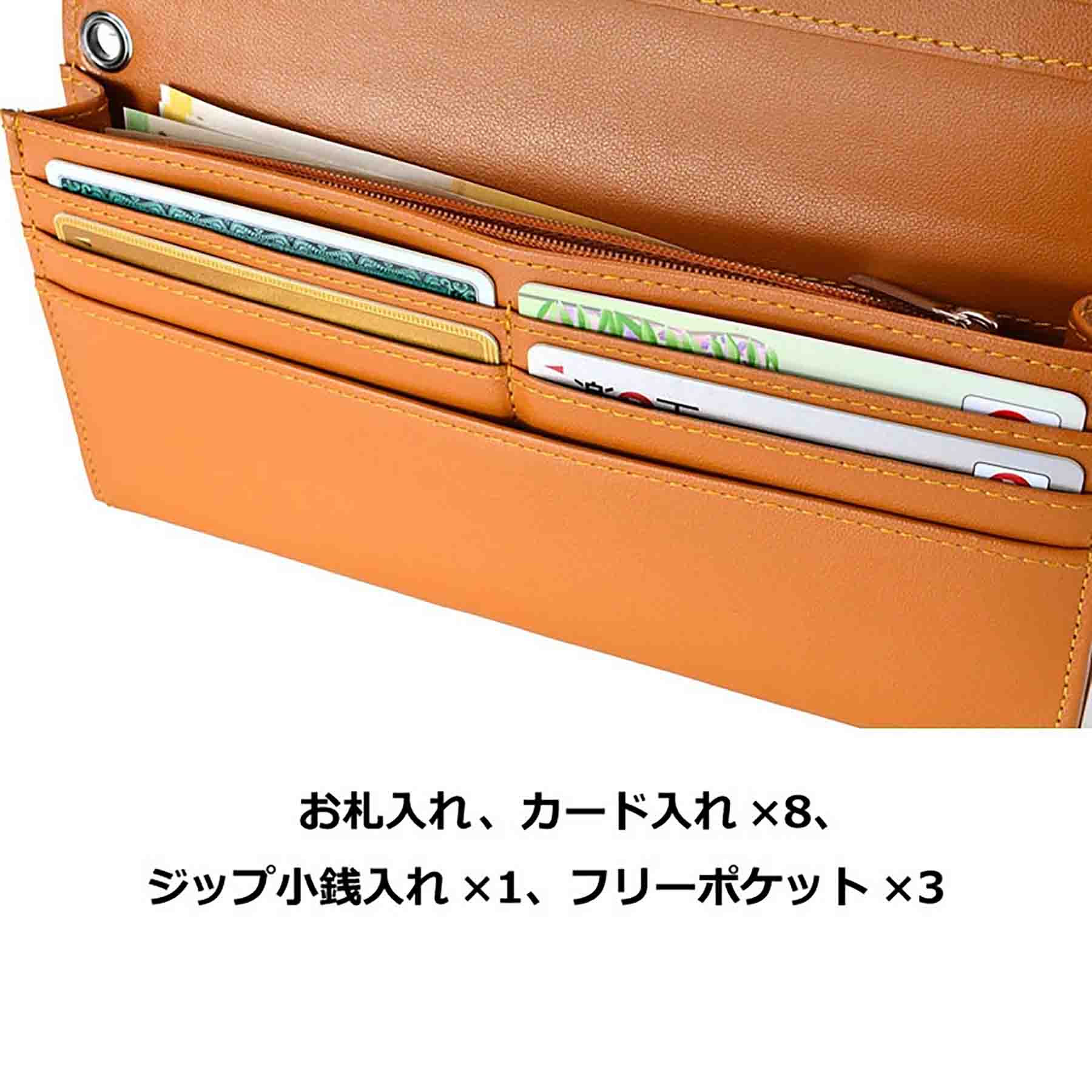 お札入れ、カード入れ×8、ジップ小銭入れ×1、フリーポケット×3 |