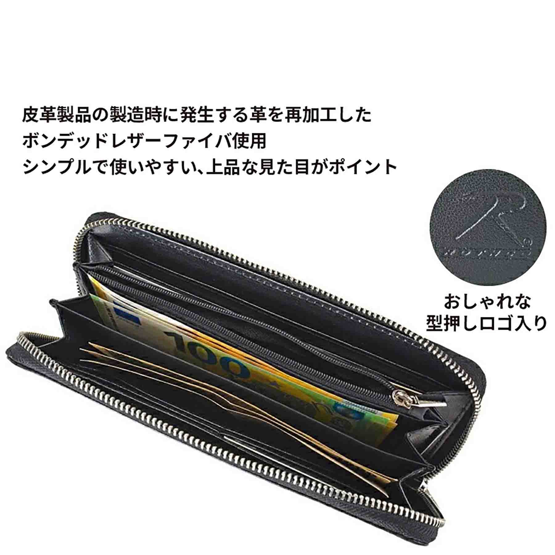 ロスコ リサイクルレザー ラウンド長財布 45050は、皮革製品の製造時に発生する革を再加工した本デッドレザーファイバーを使用した長財布です。