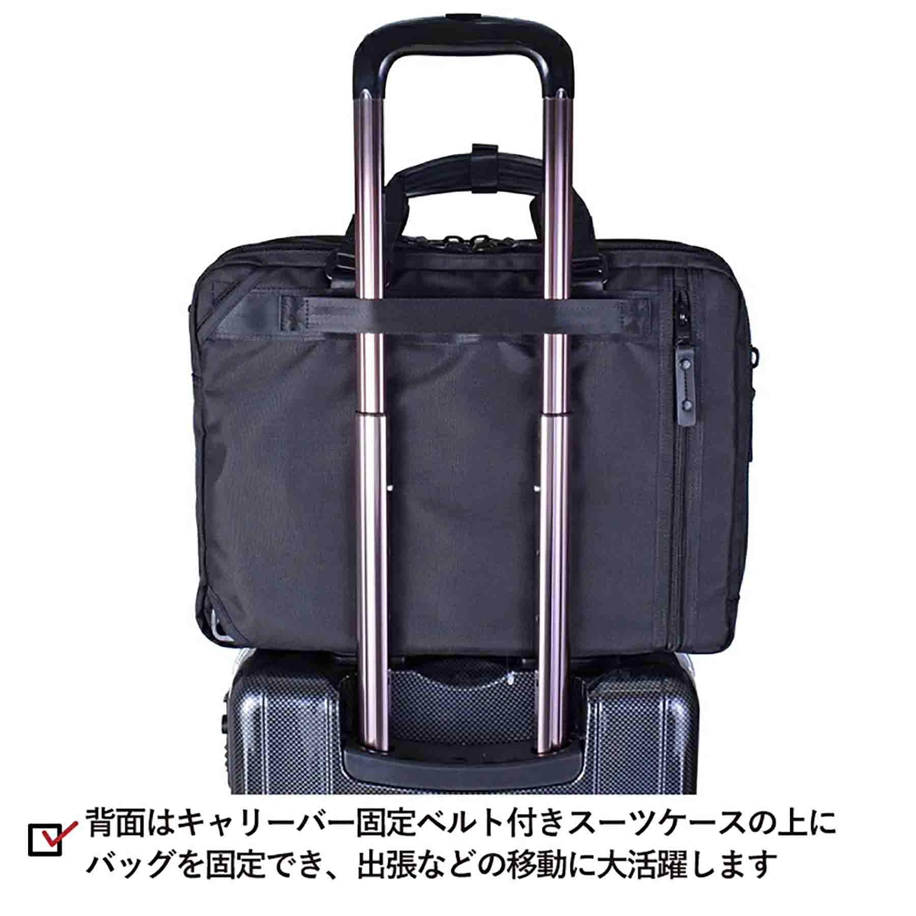 ロスコ マルティ 3WAYビジネスバッグ 45068は、スーツケースの上にバッグを固定でき、出張などの移動に大活躍のビジネスバッグです。